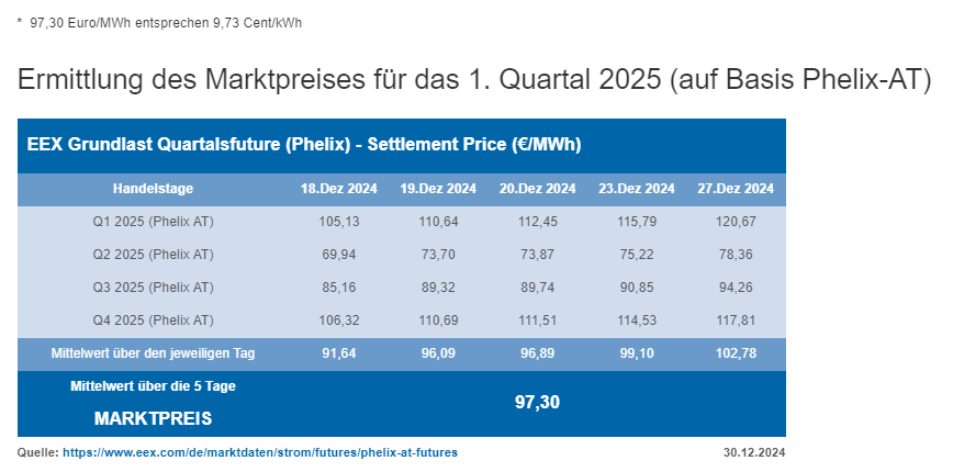 Interessant dass noch immer nichts veröffentlicht wurde, ich komme auf 9,167 ct/kWh für Q4 Für September hat die OeMAG (laut meinen Berechnungen) 5,254 ct/kWh erzielt, es kommen daher die 60% und somit 5,892 zu tragen. |
