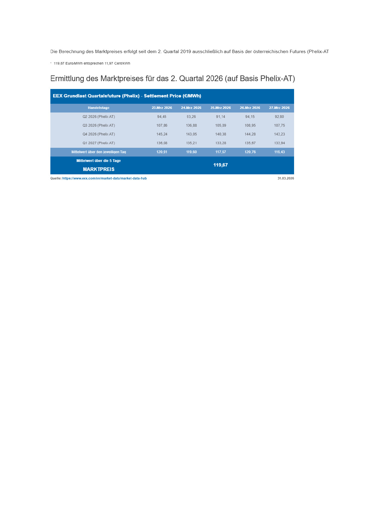 Hallo zusammen neuer Markpreis mit 119,67 €/MWh ist sehr hoch finde ich gruß andi |