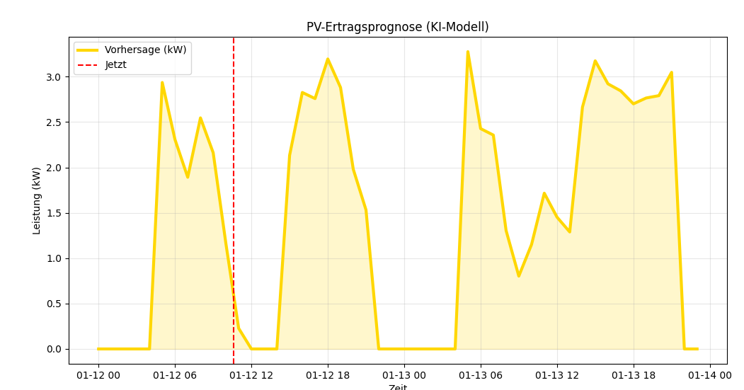 Hab mit openmeteo und den daten von geosphere (M)eine KI trainiert. Ein kleines neuronales Netz, welches den PV Ertrag für meine Anlage mit meinen Werten, Standort, Ausrichtung usw. errechnet: EDIT: und nach einem durchlauf mit gemini, schaut das noch besser aus: zumindest steht in der Nacht amal 0..... :D EDIT: und nach einem durchlauf mit gemini, schaut das noch besser aus: To-Do's: - mehr Trainingsdaten holen - nicht nur die globalstrahlung, sondern auch sonnenstunden, wind, temperatur, feuchte usw mit einbauen - dzt. ein Mittelwert aus den GeoSphere und OpenMeteo Daten, evtl muss ich hier gewichten - die KI scheint immer noch werte mit cglo~0 nicht als 0 zu interpretieren - .... tausend andere Sachen Aber coole API, Daten scheinen gut zu sein |
