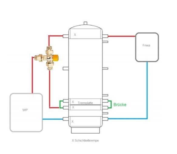 Eventuell kann man natürlich, wie oft vorgeschlagen, den FriWa-VL ganz oben anschließen. Bei dem TWL-Speicher finde ich das aber nicht sinnvoll. Die obere Schichtleitkrempe ist nur nach oben offen, d.h. das Wasser wird ohnehin fast ganz oben gezapft. Außerdem leitet die Schichtleitkrempe den WP WP [Wärmepumpe]-Vorlauf relativ direkt zum warmen FriWa-Zapfpunkt gegenüber weiter -> selbst bei beinahe leerem Speicher sollte man dann beim Duschen nicht merken, falls die WP WP [Wärmepumpe] gerade den Puffer heizt. Was haltet ihr davon? Ich hoffe es gibt noch bald ein paar positive Wortspenden, denn ich muss bald bestellen und umsetzen. LG |