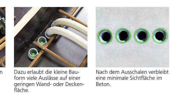 1. Nachträglich durchbohren und mit Dichtmasse/Ringraumdichtung abdichten, dann innen eine Verteilerdose betonieren und von dort mittels Leerrohr in den Fußbodenaufbau und weiter zur Verteilung
