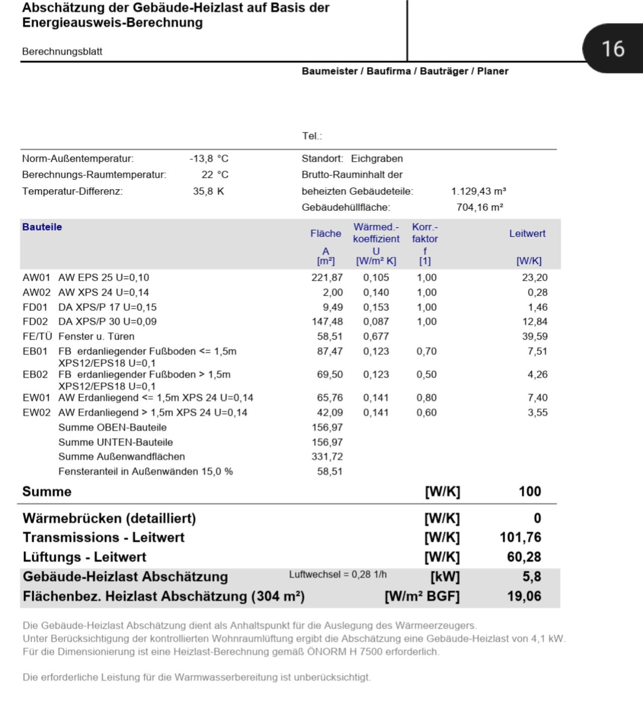Wir reden ja hier von einem PH mit einem HWB von <10 kWh/m²a (berechnet für die Bruttogrundfläche) bei Referenzklima und nicht für ein 0815 Haus mit <50 kWh/m²a. Für <10 kWh/m²a muss der U-Wert der Wand bzw. Dach bei 0,1 W/(m²K) und die Wärmebrücken sollten bei fast 0 oder negativ sein.