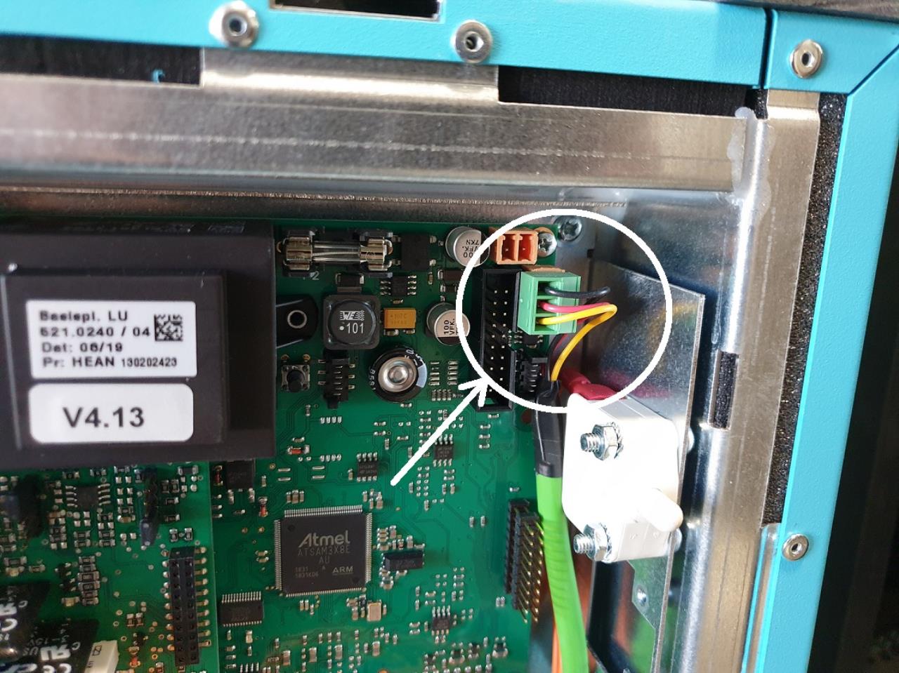 Und dann den Fühler eng an der Dämmung anliegend per Klemmschraube festgezogen.