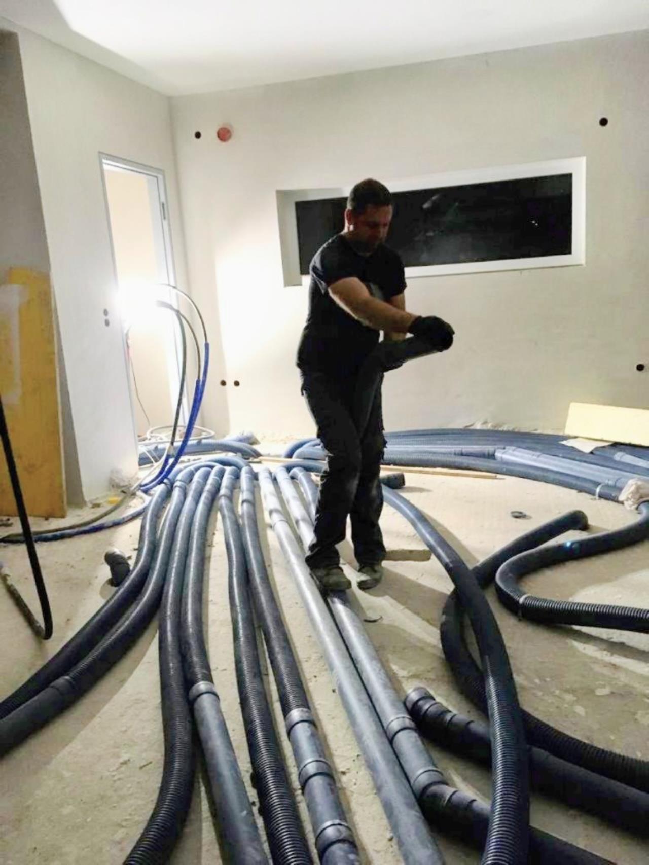 Ich bin an hier besprochenen Verlegungsmethodik interessiert. DN 90 Rohre im Fußbodenaufbau und wo sonst nicht möglich DN90 Schläuche.