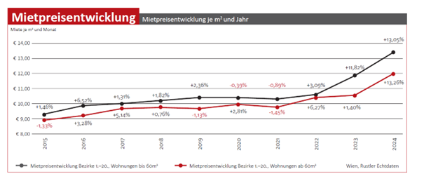 ich denke, dass wir da gar nicht so lange benötigen werden. Nach dem soeben vorgestellten Regierungsprogramm soll die Inflationsanpassung 2025 ausgesetzt werden und 2026 um maximal 1% bzw. 2027 Erhöhungen von maximal 2% vorsehen (ab 2028 max. 3% - jedoch für den gesamten (!) Wohnbereich). Das bedeutet, dass die Richtwertmieten 2025 auf 0% Steigerung gesetzt werden und 2026 + 2027 diese geringer als die Inflationserwartung angehoben werden dürfen. Von Corona bis Ende 2027 werden die Mieten dann real betrachtet etwa 11% verloren haben.