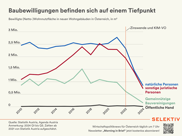 Die Folge wird sein, dass unabhängig des unglaublichen Einbruchs im Wohnungsneubau, die Eigentümer mit Erneuerungen/Sanierungen noch sparsamer werden bzw. sich generell überlegen werden, zu vermieten (vorsorglich wurde die Mindestbefristung auch gleich auf 5 Jahre angehoben). Ist zwar alles eine nette Symptombekämpfung, eine Wohnangebotserweiterung sieht jedoch anders aus.