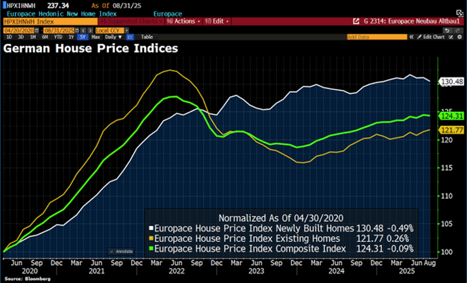 August Update aus Deutschland: das sommerlich ruhigere Treiben am Wohnimmobilienmarkt schlägt sich leicht auf die Preise durch - Neubauten verbilligten sich im Vergleich zum Juli um ein knappes halbes Prozent, Preise für bestehende Häuser stiegen um 0,26% stiegen. In Summe sank der Index um 0,1% gegenüber Juli. Betreffend die deutliche Erholung bei den heimischen Verbücherungszahlen liefert REMAX einen detaillierten Bericht über das 1. HJ 2025: https://www.remax.at/cfdok/PA-ImmoSpiegel-2025-HJ1-Gesamtmarkt_PDF.pdf |