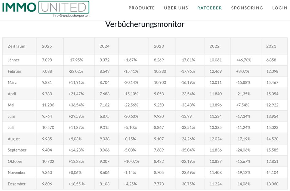 Heute nur ganz schnell. Der massive Rückgang kommt mir komisch vor?! Angebote Willhaben um den 15. jeden Monats ETW Verkauf SBG 15.01.2023: 1293 15.02.2023: 1376 15.03.2023: 1510 15.04.2023: 1622 15.05.2023: 1651 15.06.2023: 1715 17.07.2023: 1822 15.08.2023: 1847 15.09.2023: 1867 15.10.2023: 1924 15.11.2023: 1977 15.12.2023: 1996 15.01.2024: 1934 15.02.2024: 1940 15.03.2024: 1915 15.04.2024: 1959 15.06.2024: 2113 15.07.2024: 2045 15.08.2024: 2029 15.09.2024: 2082 15.10.2024: 2169 15.11.2024: 2092 15.12.2024: 2076 15.01.2025: 2060 15.02.2025: 2049 15.03.2025: 2012 15.04.2025: 2100 15.05.2025: 2065 15.06.2025: 2017 15.07.2025: 2043 15.08.2025: 2089 15.09.2025: 2137 15.10.2025: 2094 15.11.2025: 2103 15.12.2025: 2065 ETW Verkauf NOE: 15.07.2023: 3695 15.08.2023: 3881 15.09.2023: 3966 15.10.2023: 3900 15.11.2023: 4017 15.12.2023: 4023 15.01.2024: 3897 15.02.2024: 4089 15.03.2024: 4005 15.04.2024: 3959 15.06.2024: 4095 15.07.2024: 4241 15.08.2024: 4208 15.09.2024: 4164 15.10.2024: 4104 15.11.2024: 4263 15.12.2024: 4356 15.01.2025: 4280 15.02.2025: 4219 15.03.2025: 4363 15.04.2025: 4497 15.05.2025: 4554 15.06.2025: 4549 15.07.2025: 4479 15.08.2025: 4269 15.09.2025: 4479 15.10.2025: 4600 15.11.2025: 4477 15.12.2025: 4323 ETW Verkauf Wien: 15.07.2023: 12.908 15.08.2023: 13.475 15.09.2023: 13.589 15.10.2023: 13.824 15.11.2023: 14.619 15.12.2023: 14.799 15.01.2024: 14.498 15.02.2024: 14.387 15.03.2024: 14.856 15.04.2024: 15.004 15.06.2024: 15.881 15.07.2024: 16.155 15.08.2024: 16.762 15.09.2024: 17.178 15.10.2024: 17.108 15.11.2024: 16.903 15.12.2024: 16.973 15.01.2025: 16.550 15.02.2025: 16.336 15.03.2025: 17.038 15.04.2025: 17.724 15.05.2025: 18.302 15.06.2025: 18.687 15.07.2025: 19.111 15.08.2025: 18.870 15.09.2025: 19.369 15.10.2025: 19.673 15.11.2025: 19.682 15.12.2025: 19.828 ETW Verkauf OOE: 15.07.2023: 3.117 15.08.2023: 3.102 15.09.2023: 3.225 15.10.2023: 3.352 15.11.2023: 3.428 15.12.2023: 3.490 15.01.2024: 3.502 15.02.2024: 3.489 15.03.2024: 3.494 15.04.2024: 3.513 15.06.2024: 3.614 15.07.2024: 3.670 15.08.2024: 3.612 15.09.2024: 3.716 15.10.2024: 3.904 15.11.2024: 3.821 15.12.2024: 3.748 15.01.2025: 3.760 15.02.2025: 3.778 15.03.2025: 3.897 15.04.2025: 3.943 15.05.2025: 3.994 15.06.2025: 4.140 15.07.2025: 4.068 15.08.2025: 4.161 15.09.2025: 4.378 15.10.2025: 4.245 15.11.2025: 4.210 15.12.2025: 4.162 Haus kaufen SBG 15.01.2023: 442 15.02.2023: 432 15.03.2023: 465 15.04.2023: 486 15.05.2023: 520 15.06.2023: 538 15.07.2023: 590 15.08.2023: 618 15.09.2023: 626 15.10.2023: 652 15.11.2023: 683 15.12.2023: 686 15.01.2024: 643 15.02.2024: 632 15.03.2024: 631 15.04.2024: 623 15.06.2024: 668 15.07.2024: 641 15.08.2024: 637 15.09.2024: 642 15.10.2024: 667 15.11.2024: 677 15.12.2024: 671 15.01.2025: 665 15.02.2025: 660 15.03.2025: 685 15.04.2025: 707 15.05.2025: 722 15.06.2025: 744 15.07.2025: 732 15.08.2025: 727 15.09.2025: 733 15.10.2025: 705 15.11.2025: 716 15.12.2025: 680 Haus Kaufen: NOE: 15.07.2023: 5.122 15.08.2023: 5.202 15.09.2023: 5.482 15.10.2023: 5.350 15.11.2023: 5.485 15.12.2023: 5.368 15.01.2024: 5.173 15.02.2024: 5.200 15.03.2024: 5.353 15.04.2024: 5.549 15.06.2024: 5.743 15.07.2024: 5.630 15.08.2024: 5.599 15.09.2024: 5.666 15.10.2024: 5.560 15.11.2024: 5.410 15.12.2024: 5.199 15.01.2025: 5.100 15.02.2025: 4.944 15.03.2025: 5.039 15.04.2025: 5.219 15.05.2025: 5.299 15.06.2025: 5.276 15.07.2025: 5.274 15.08.2025: 5.254 15.09.2025: 5.298 15.10.2025: 5.317 15.11.2025: 5.142 15.12.2025: 4.849 Haus Kaufen: OOE 15.07.2023: 2.248 15.08.2023: 2.247 15.09.2023: 2.392 15.10.2023: 2.429 15.11.2023: 2.470 15.12.2023: 2.348 15.01.2024: 2.312 15.02.2024: 2.310 15.03.2024: 2.371 15.04.2024: 2.422 15.06.2024: 2.425 15.07.2024: 2.383 15.08.2024: 2.306 15.09.2024: 2.376 15.10.2024: 2.441 15.11.2024: 2.391 15.12.2024: 2.271 15.01.2025: 2.220 15.02.2025: 2.169 15.03.2025: 2.278 15.04.2025: 2.294 15.05.2025: 2.311 15.06.2025: 2.349 15.07.2025: 2.351 15.08.2025: 2.316 15.09.2025: 2.409 15.10.2025: 2.294 15.11.2025: 2.249 15.12.2025: 2.094 Wohnung mieten Österreich: 15.08.2023: 24.197 15.09.2023: 22.505 15.10.2023: 22.078 15.11.2023: 22.183 15.12.2023: 21.167 15.01.2024: 21.187 15.02.2024: 21.183 15.03.2024: 21.084 15.04.2024: 20.892 15.06.2024: 20.558 15.07.2024: 20.465 15.08.2024: 19.416 15.09.2024: 19.048 15.10.2024: 18.588 15.11.2024: 18.607 15.12.2024: 18.195 15.01.2025: 18.200 15.02.2025: 18.226 15.03.2025: 18.846 15.04.2025: 18.308 15.05.2025: 18.403 15.06.2025: 18.207 15.07.2025: 18.348 15.08.2025: 17.239 15.09.2025: 17.605 15.10.2025: 18.205 15.11.2025: 18.767 15.12.2025: 18.084 Haus mieten Österreich 15.11.2023: 1.576 15.12.2023: 1.453 15.01.2024: 1.412 15.02.2024: 1.346 15.03.2024: 1.329 15.04.2024: 1.352 15.06.2024: 1.354 15.07.2024: 1.356 15.08.2024: 1.371 15.09.2024: 1.434 15.10.2024: 1.485 15.11.2024: 1.474 15.12.2024: 1.520 15.01.2025: 1.521 15.02.2025: 1.522 15.03.2025: 1.508 15.04.2025: 1.451 15.05.2025: 1.487 15.06.2025: 1.476 15.07.2025: 1.469 15.08.2025: 1.419 15.09.2025: 1.462 15.10.2025: 1.435 15.11.2025: 1.455 15.12.2025: 1.384 Wohnung mieten Wien: 15.06.2024: 4.463 15.10.2025: 3.927 15.11.2025: 4.544 15.12.2025: 4.212 |