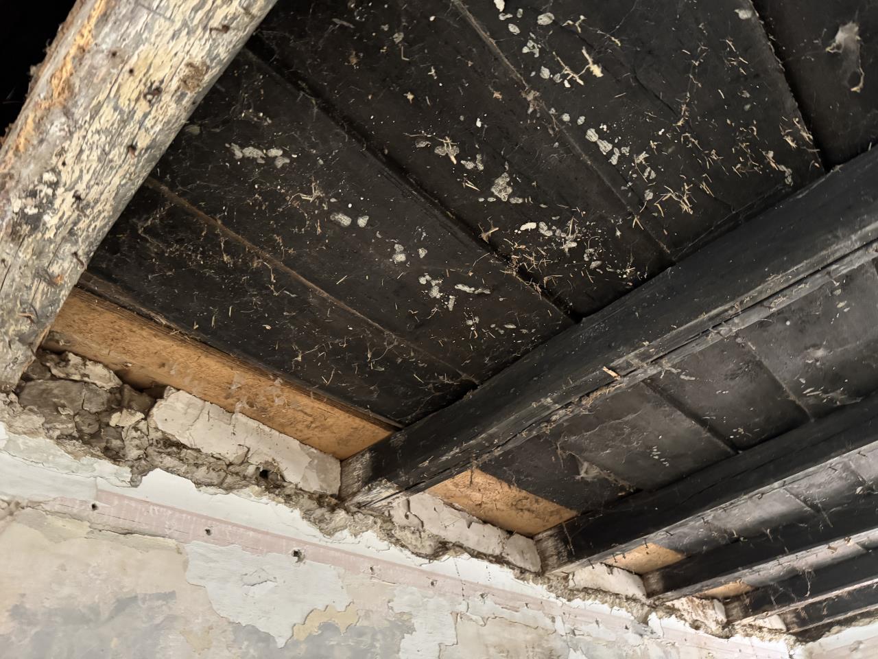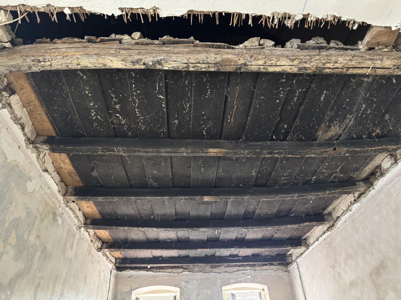 heute haben wir die bretterschalung entfernt. sind hier altholzexperten unterwegs? was sagt ihr zu den balken? rein vom foto her natürlich... |