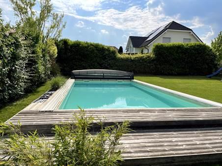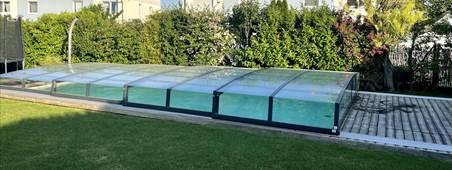 Das Pool ist ein Styroporpool mit 8x4m. Die Pooltechnik ist hinten in einem Schacht, bei dem auch eine Betondecke gemacht werden muss. Die Skimmer sind dort auch drinnen - man kann sie einfach aufklappen, genauso wie die Tür zum Schacht hinunter.