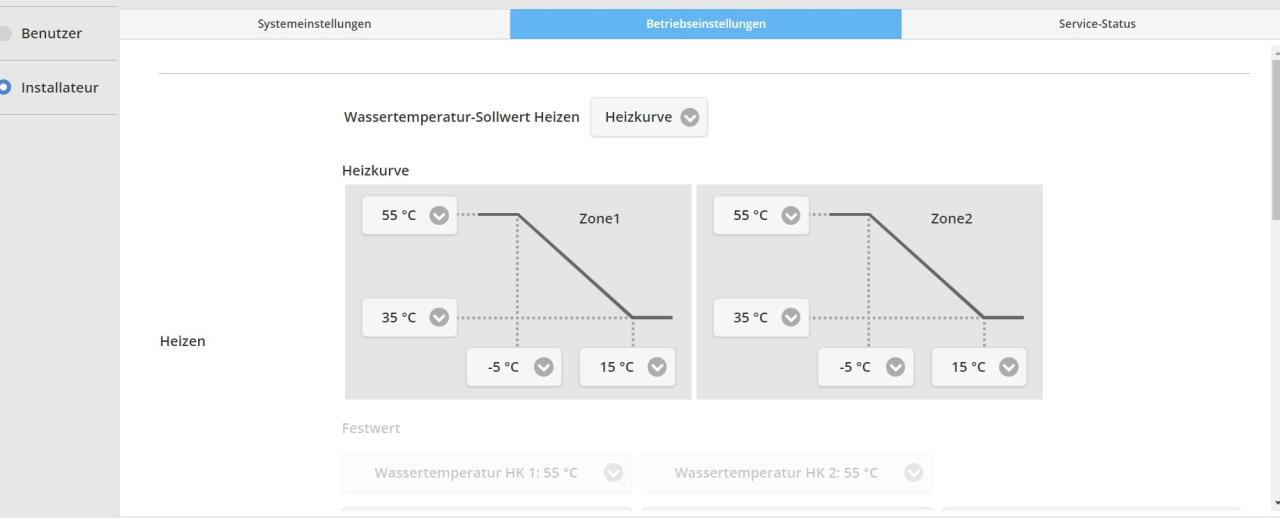 Es ist ein Aussenfühler installiert. Ja, es wird je 1 Heizkurve pro Heizkreis verwendet. |