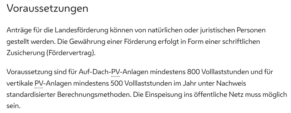was auch nicht der Fall sein wird, da meist ein mindest Ertrag kwh/Kwp als Förderbedingung genannt wird, denn man mit der Nordseite nicht schafft :) |
