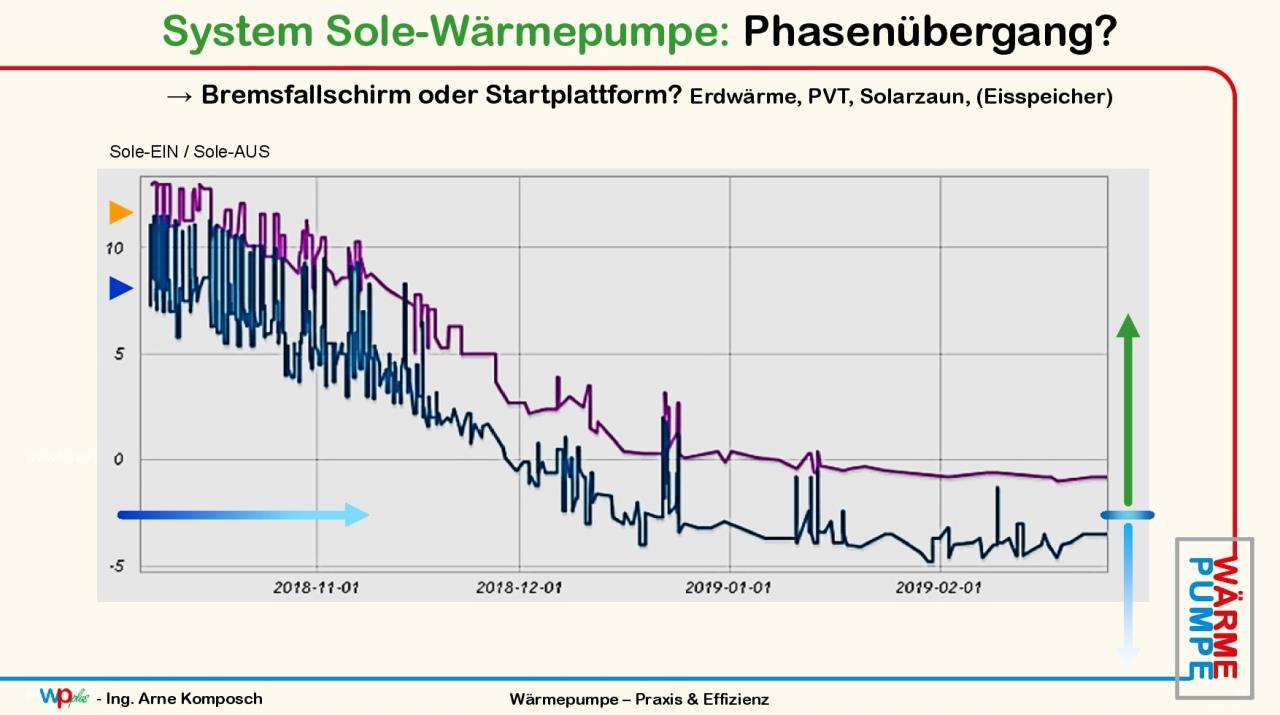 ich würde sogar sagen weil: die quelltemperatur liegt über der lufttemperatur. das ist ja das problem. eine gute auslegung mit plusgraden läßt weniger 'luft' zum ernten aus der umgebung. wenn das system auf -10° ausgelegt ist dann hat man wieder mehr potential aus der umgebung. darum laufen die speziellen PVT-wärmepumpen bis -20° sole... ein eisspeicher beginnt dort wo wir aufhören -bremsfallschirm oder startrampe... |