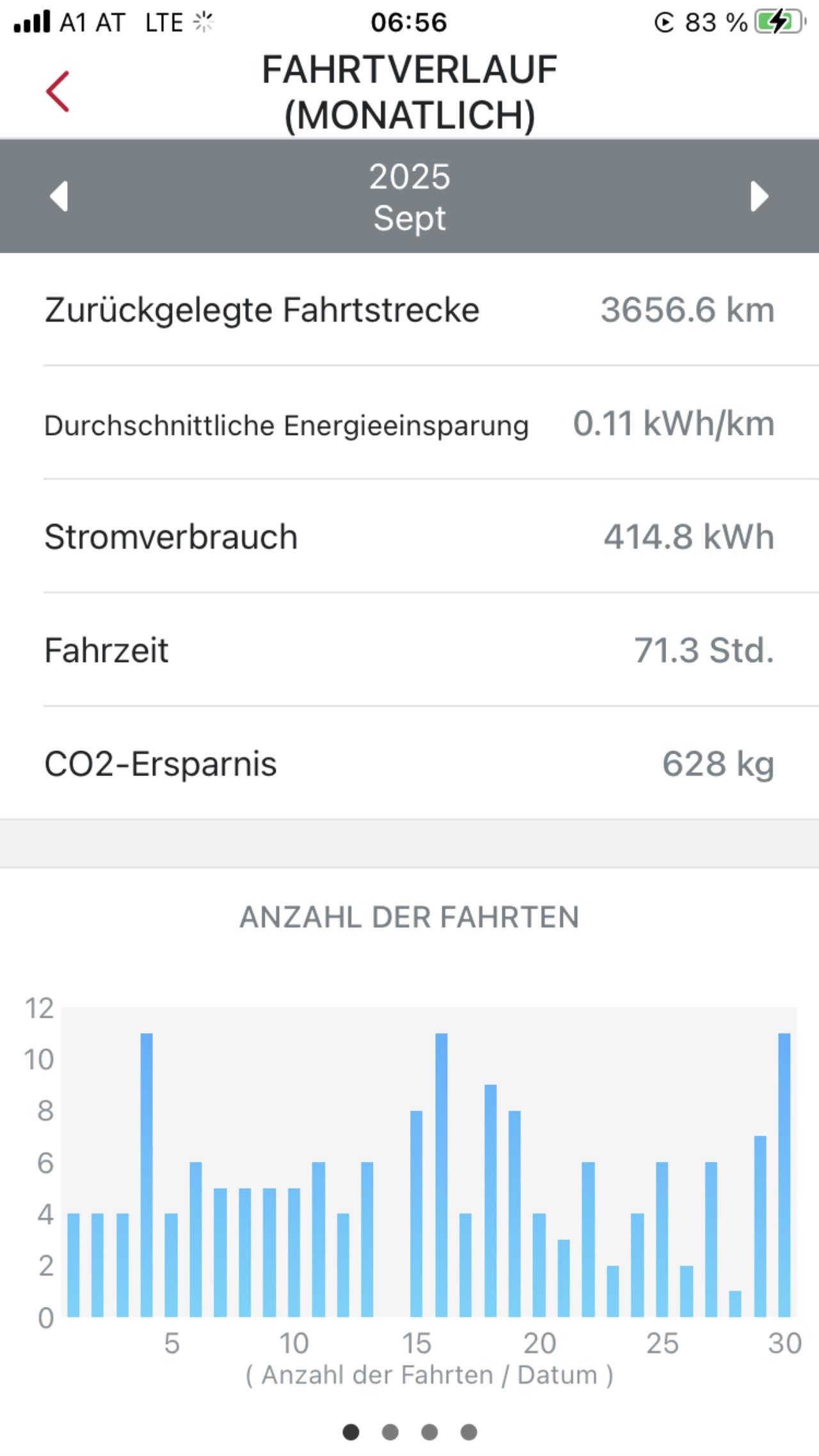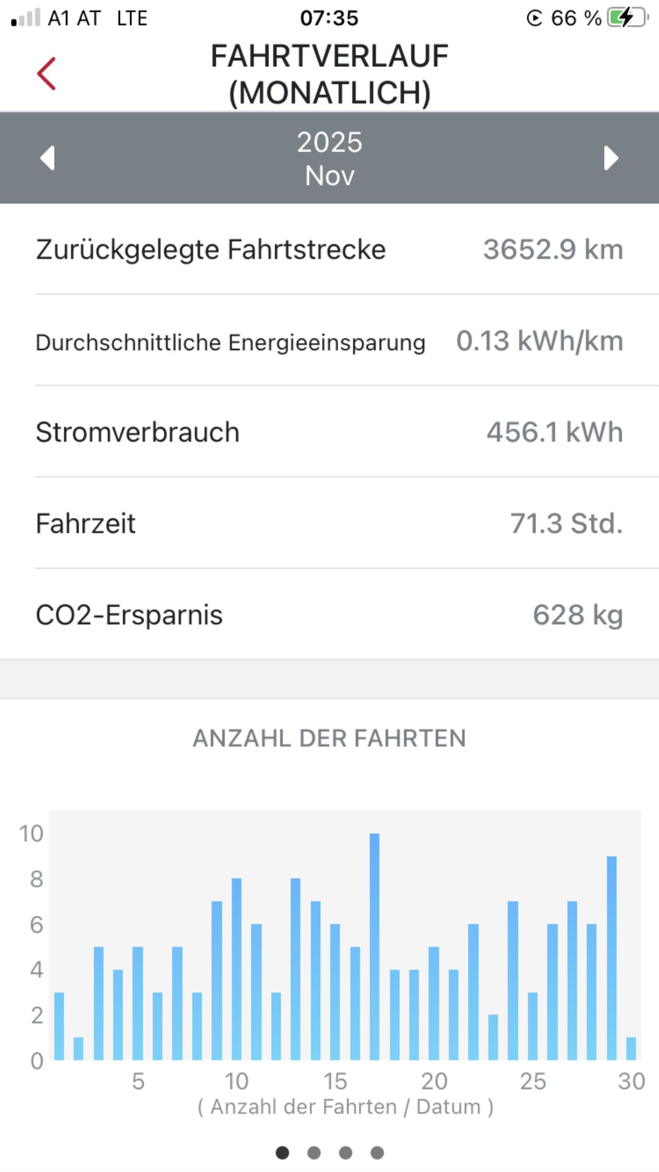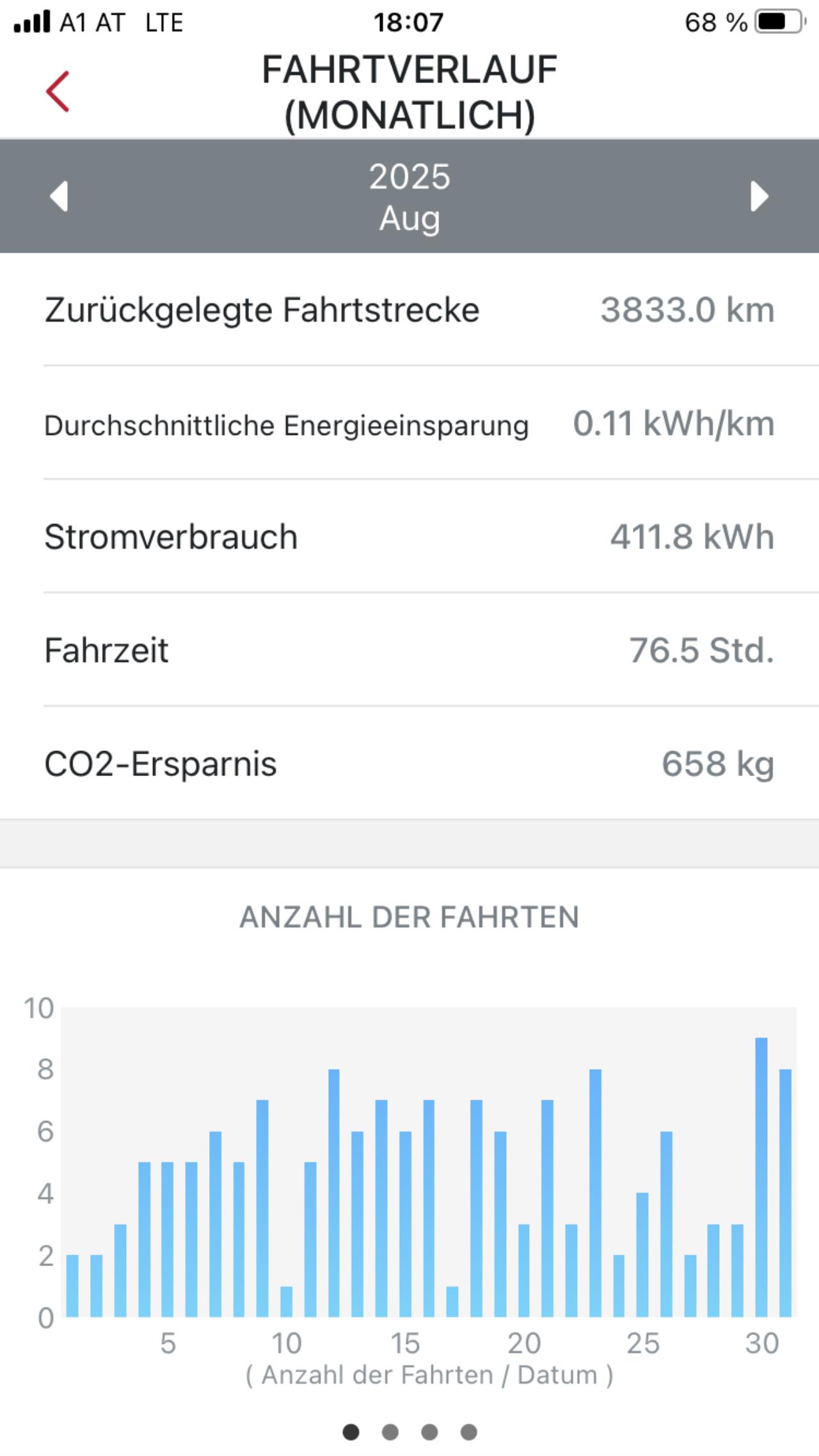 Für die Reichweite ist der Fahrverbrauch interessant, für die Kosten die geladenen kWh, die Differenz dazwischen sollte möglichst gering und erklärbar sein. |