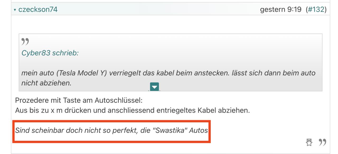 Jeder wendet das anders an. Ich sperr das Auto in 99% der Fälle nur auf, wenn ich wegfahren muß. Warum eigentlich unpraktisch? Wenn man wieder zusperrt, ladets wieder weiter. Ich würde mir zb. nie eine WB mit abziehbaren Kabel kaufen, beim Auto ist ohnehin eines dabei. An beiden sollte man ned selbst rumbasteln und einen Schalter einbauen. d.h. man braucht noch ein drittes Kabel. i3 und Etron nicht. mhm, versteh nicht, was du meinst. Für mich ist das unpraktikabel, ohne jegliche Polemik. |