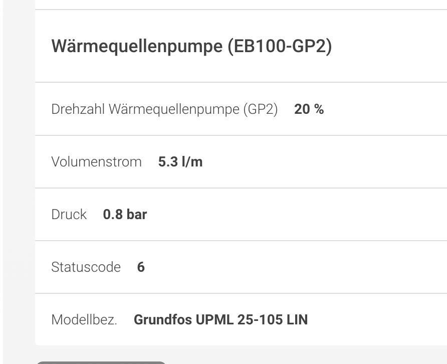 Welche speizung fährt die WP WP [Wärmepumpe]? Wieviel volumenstrom schafft die Solepumpe bei 100%? Soletemperatur ein/ aus? |