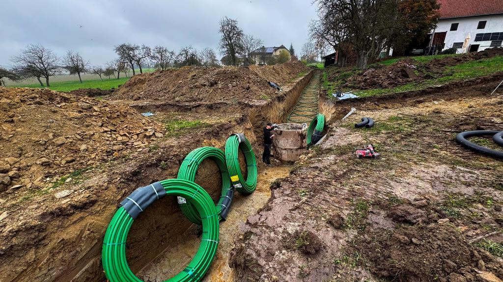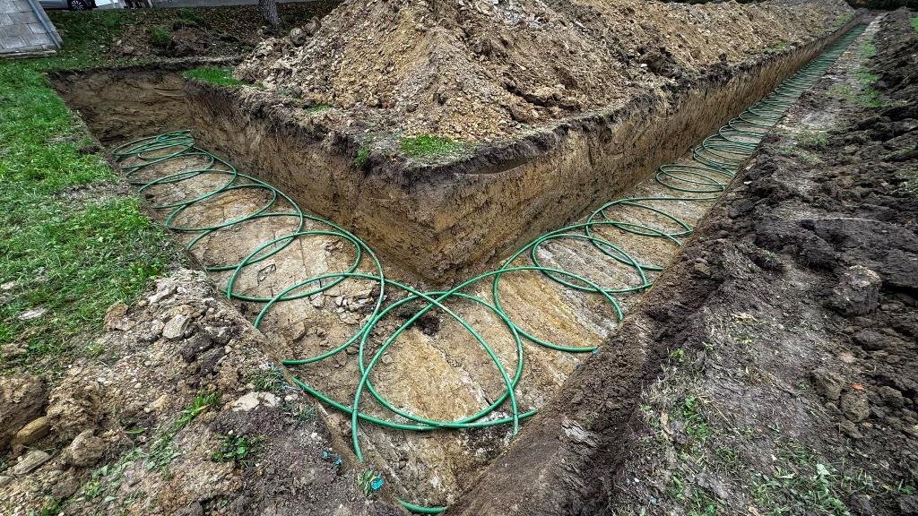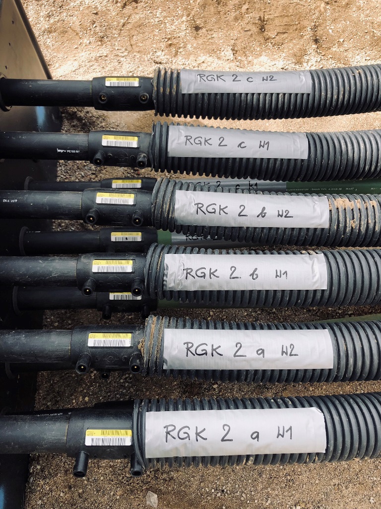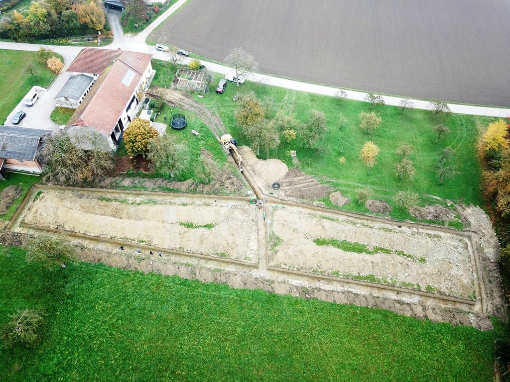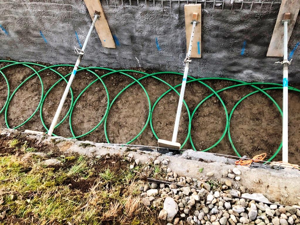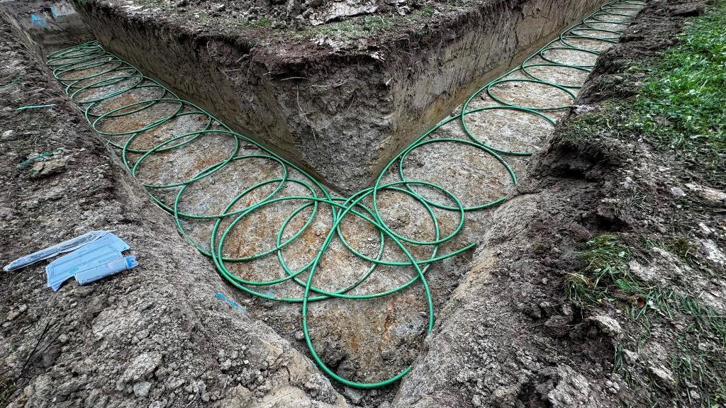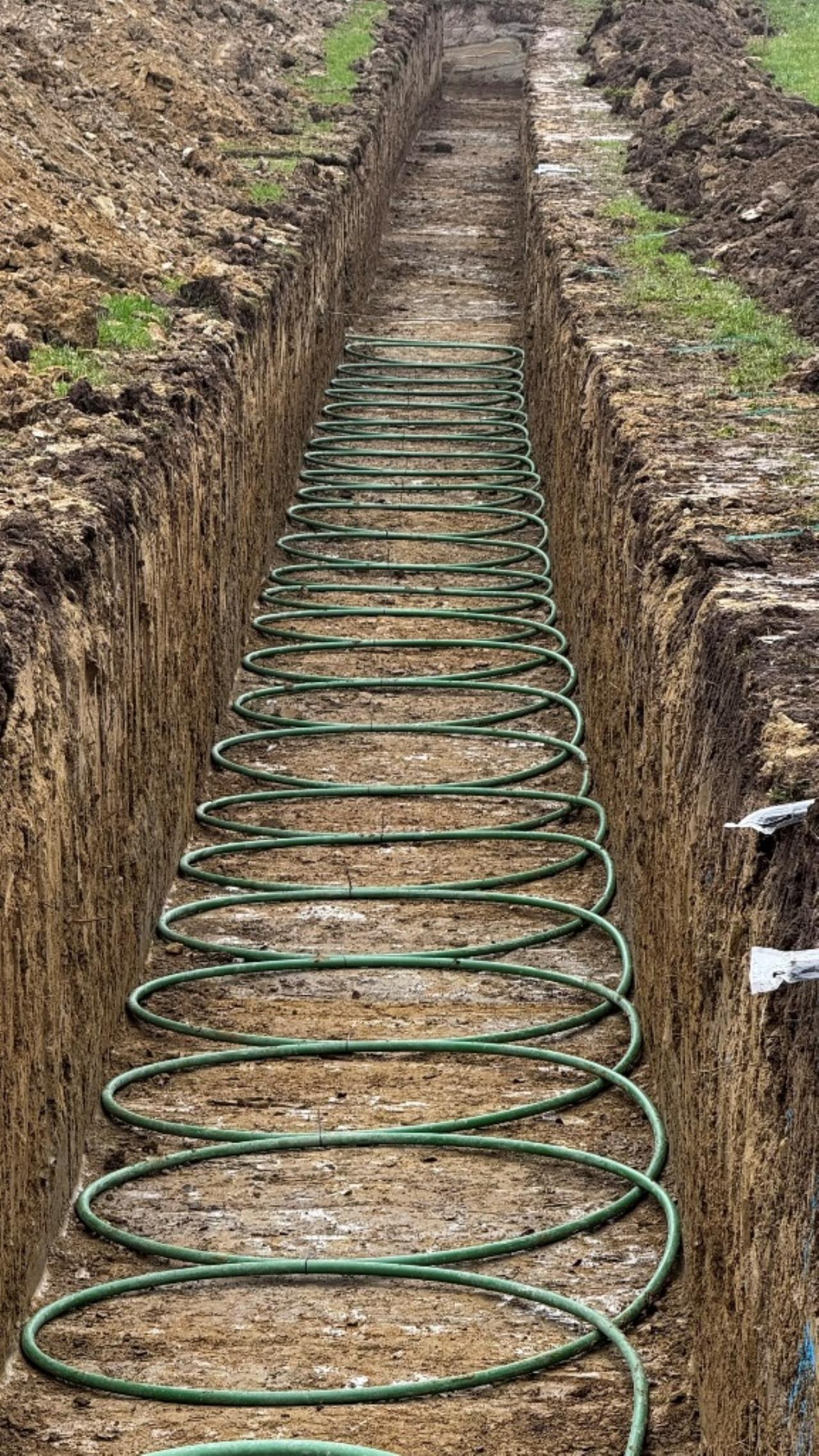 großer schmetterlings-RGK mit 2 gräben á 2xda40x400 und langer, thermisch optimierter anbindung zum haus. verlegt vom planer, bauherr und 2 nachbarn. wir haben um 9:oo begonnen und waren um 13:oo zum mittagessen mit den 1.600m rohr fertig. ziemlich weltrekordverdächtig... 🙏