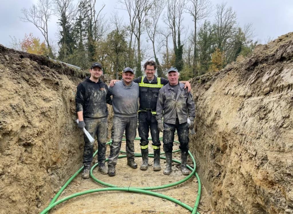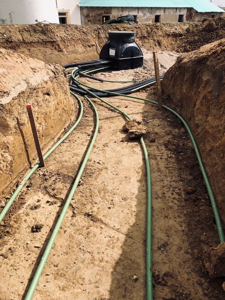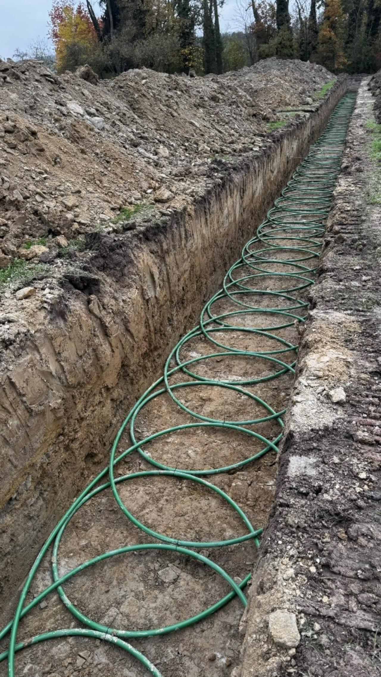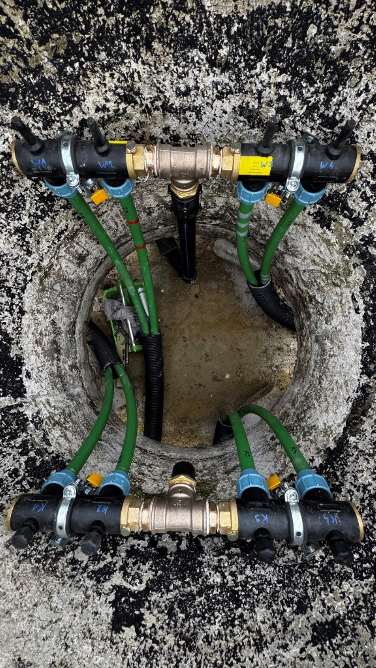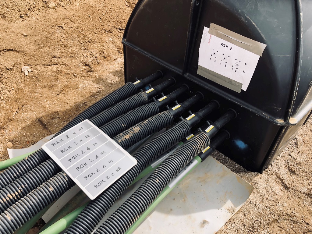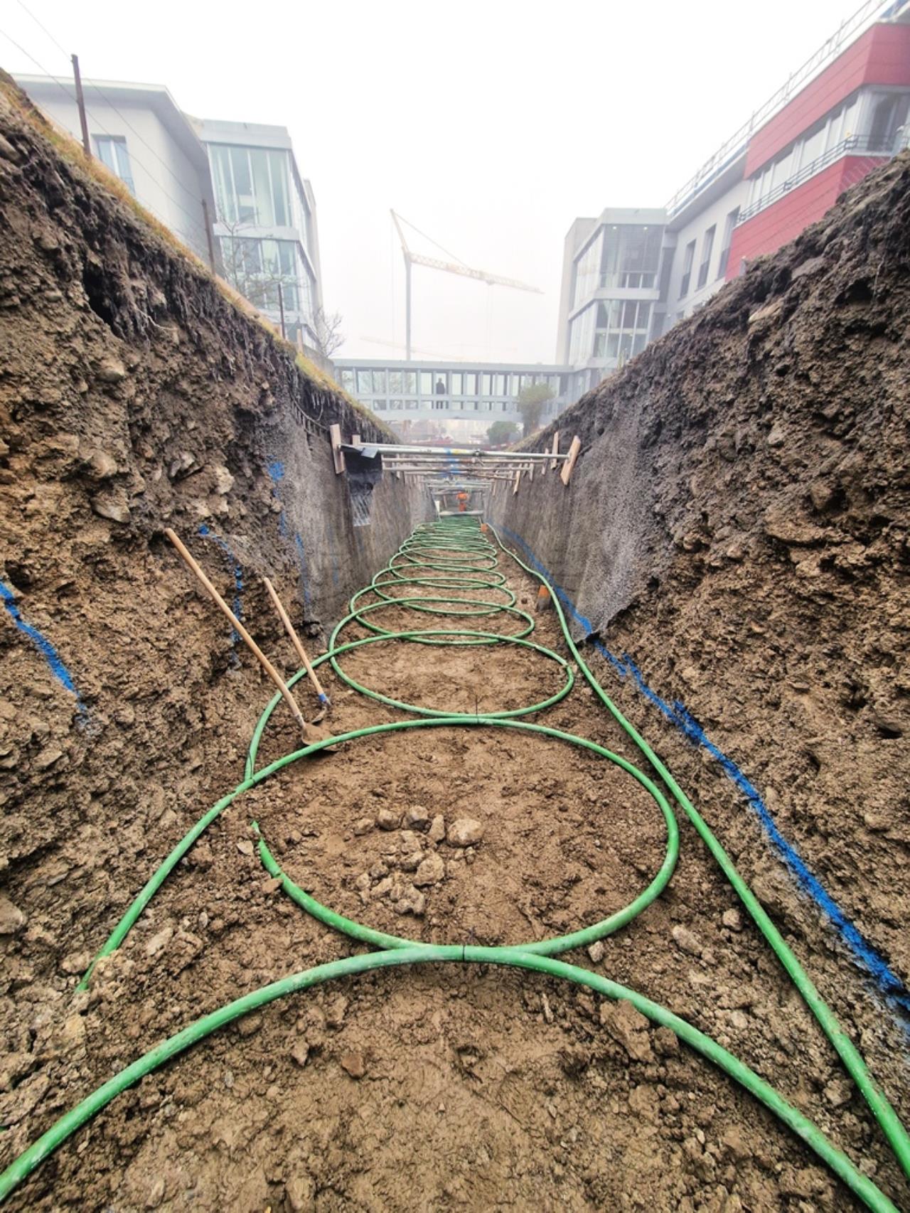 großer schmetterlings-RGK mit 2 gräben á 2xda40x400 und langer, thermisch optimierter anbindung zum haus. verlegt vom planer, bauherr und 2 nachbarn. wir haben um 9:oo begonnen und waren um 13:oo zum mittagessen mit den 1.600m rohr fertig. ziemlich weltrekordverdächtig... 🙏