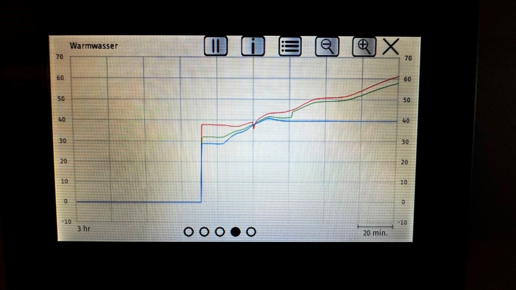 man sieht gute systemtemperaturen und eine niedrige spreizung, voll im wohlfühlbereich der wärmepumpe. der bauernhof ist unsaniert, die heizkörper durchschnittlich dimensioniert.