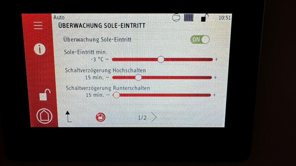 darum dreht der verdichter hoch und saugt damit mehr an der quelle. dies spürt die solepumpe und dreht mit hoch...