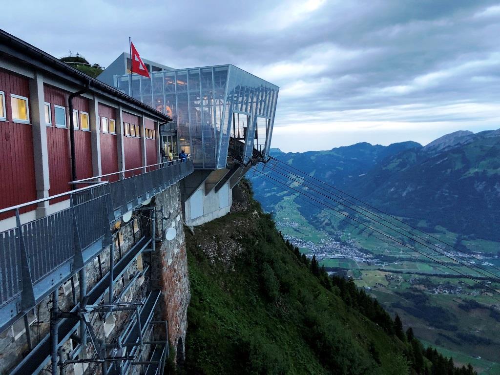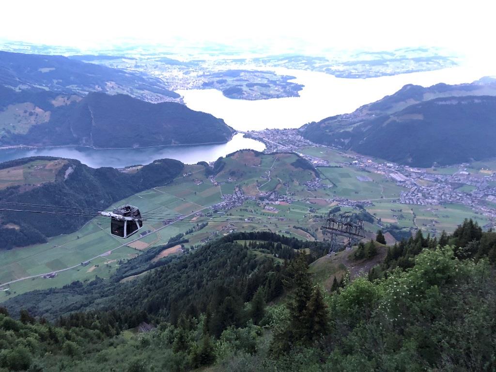 das Stanserhorn ist ein ganz besonderer ort. mitten in der Urschwyz im kanton Nidwalden führt dort die älteste elektrische standseilbahn den berg rauf. ab der mittelstation übernimmt die weltweit einzige Cabriogondelbahn. in ihr führt eine wendeltreppe aufs oberdeck und dort ist ... nichts mehr zwischen einem selbst und dem himmel. die gondel läuft nämlich auf 2 tieferliegenden lateralen seilen.