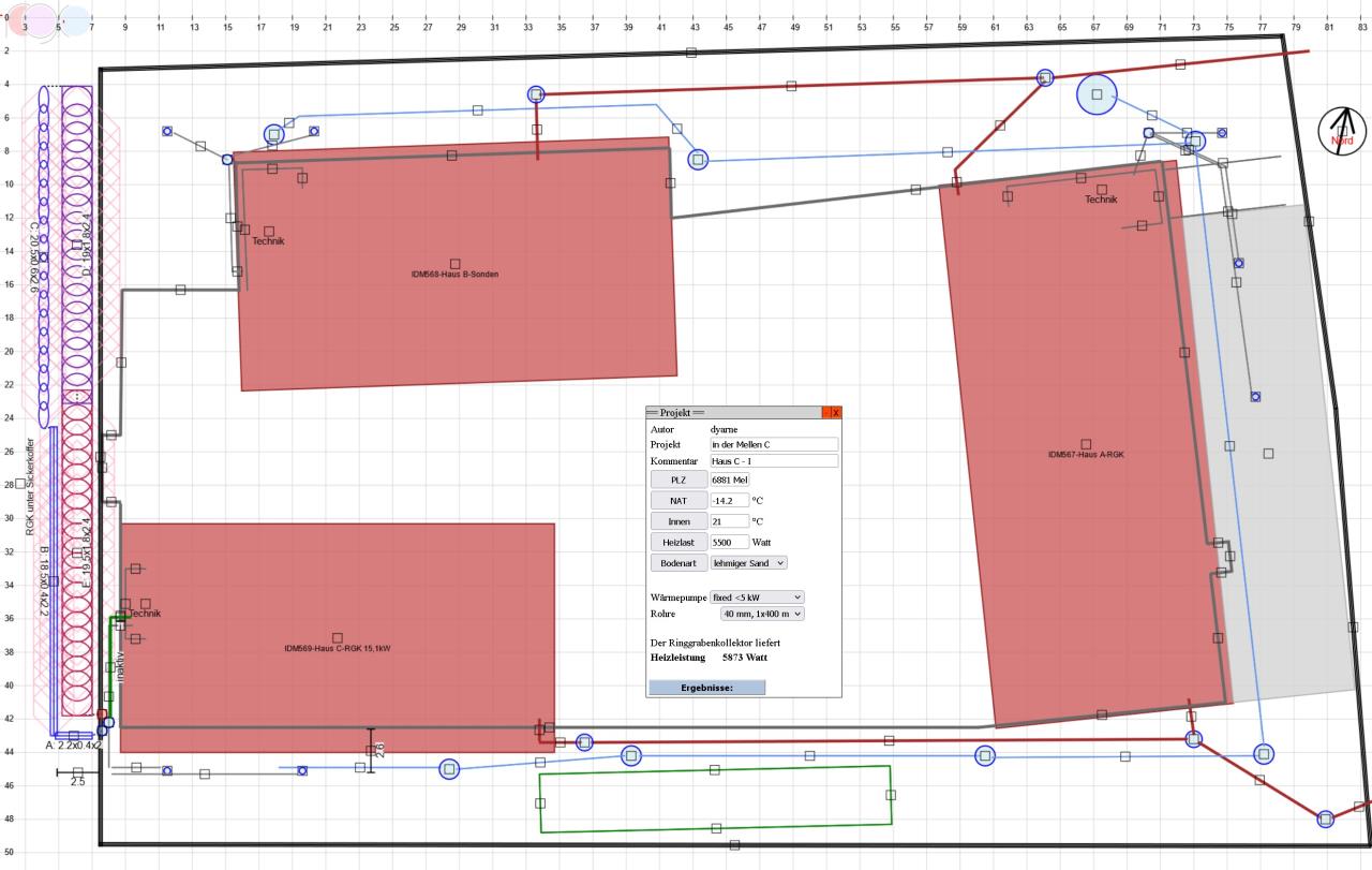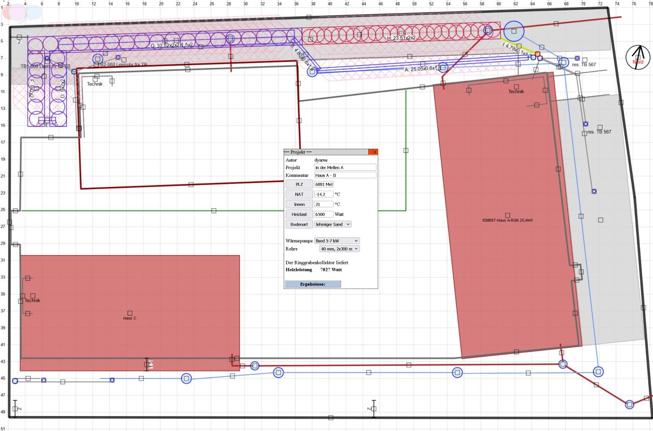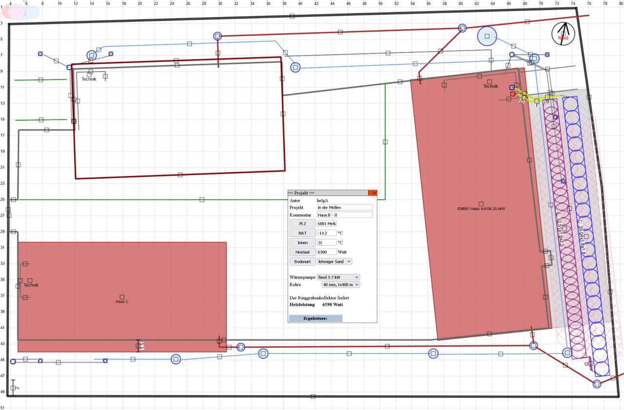 die Morscher Bauprojekte GmbH baut in Vorarlberg für gemeinnützige wohnbauträger passivnahe wohnprojekte - immer mit erdwärme und KWL KWL [Kontrollierte Wohnraumlüftung]. sie ist mehrfach ausgezeichnet worden und nimmt sogar angesichts des ohnehin hohen Vorarlberger standards eine ausnahmerolle ein. die technik kommt von den Vorarlberger manufakturen Weider und drexel&weiss. am - ganz objektiv - schönsten fleck Österreichs, im Bregenzerwald in Mellau haben sie ein projekt mit 3 großen baukörpern errichtet, ein gewerblicher für das eigene bauträgerbüro und ein fahrradgeschäft sowie 2 wohngebäude. ursprünglich nur mit bohrsonden konzipiert haben wir geohybrid 4 RGK RGK [Ringgrabenkollektor] dazugeplant was die quellkosten deutlich reduziert hat. 👉 die hürde ist daß alle 3 objekte auf einer gemeinsamen tiefgarage stehen 👉 die chance ist daß dank hochwasserschutzgebiet ein mächtiger entwässerungsring um das objekt gelegt werden mußte. in diesen haben wir uns minimal invasiv mit dem RGK RGK [Ringgrabenkollektor] reingeplant: 10cm tiefer ausbaggern, das wars... ein wohngebäude läuft mit sonden, eines mit RGK RGK [Ringgrabenkollektor] und das hauptobjekt wurde mit beidem geplant und wird aber ebenfalls rein vom RGK RGK [Ringgrabenkollektor] versorgt. meine chefplanerin ist dazu mit dem nachtzug nach Vorarlberg, zur musterverlegung und mit dem nächsten nachtzug retour... wir haben gerade das nachfolgeprojekt mit Morscher in Vorarlberg umgesetzt. diesmal 2 großvolumige wohngebäude rein mit RGK RGK [Ringgrabenkollektor]... |