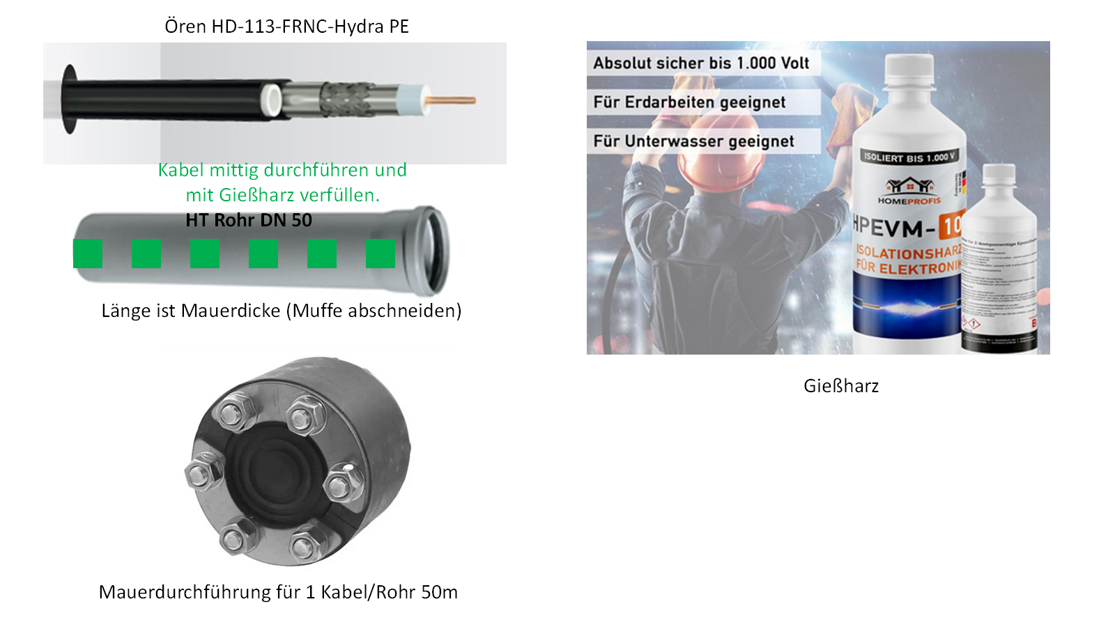Das Kabel soll im Keller eingeführt werden, da wir mit teilweise drückendem Wasser rechnen müssen (Hanglage), würde ich das gerne dicht einführen. LWL ist Zukunftsmusik, es wird erstmal Coax. Das Kabel lässt sich aber nicht trennen, es ist oval verschweißt. Einblasen geht ja auch, wenn es eingeführt ist - oder verstehe ich dich falsch?