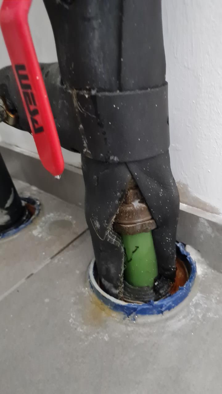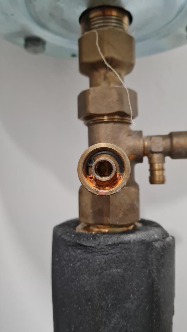 So, vom Installateur beauftragter Isolierer war jetzt da. Und es schaut sehr sauber aus. Aber hier (siehe Foto) hat er nicht drüber isoliert. Es schwitzt hier nun natürlich. Was mache ich hier? Lassen oder sollte ich hier etwas drübermachen? Danke |