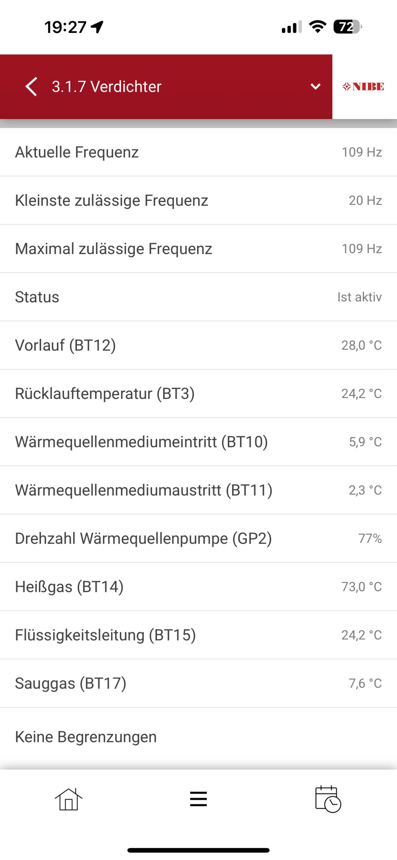 Und deinen Sperrbeteich kannst du dir auch wieder ab Serie 90 Hz einstellen unter 7.1.3.1. Glaube nicht dass dein Haus so vielleistung braucht, Deine Heizkreispumpe sollte sich wie Ds schon geschrieben hat als Startwert mal bei ca 12- 13 l/ min einfinden wenn alle Kreise voll geöffnet sind. Lies auch mal hydraulischer Abgleich paar treads durch, denke wird evtl mal darauf hinaus laufen. Auch dein letztes Bild bei den Gradminuten Verdichterstart - 400 Rel Start Gradminuten 200 auch wieder für den Anfang. Wird halt zur richtigen Optimierung bis zur nächsten Heizperiode dauern aber wie Ds schon schreibt. Dein Warmwasser is für den Sommer die erste Hürde Grüße und Herzlich Willkommen |