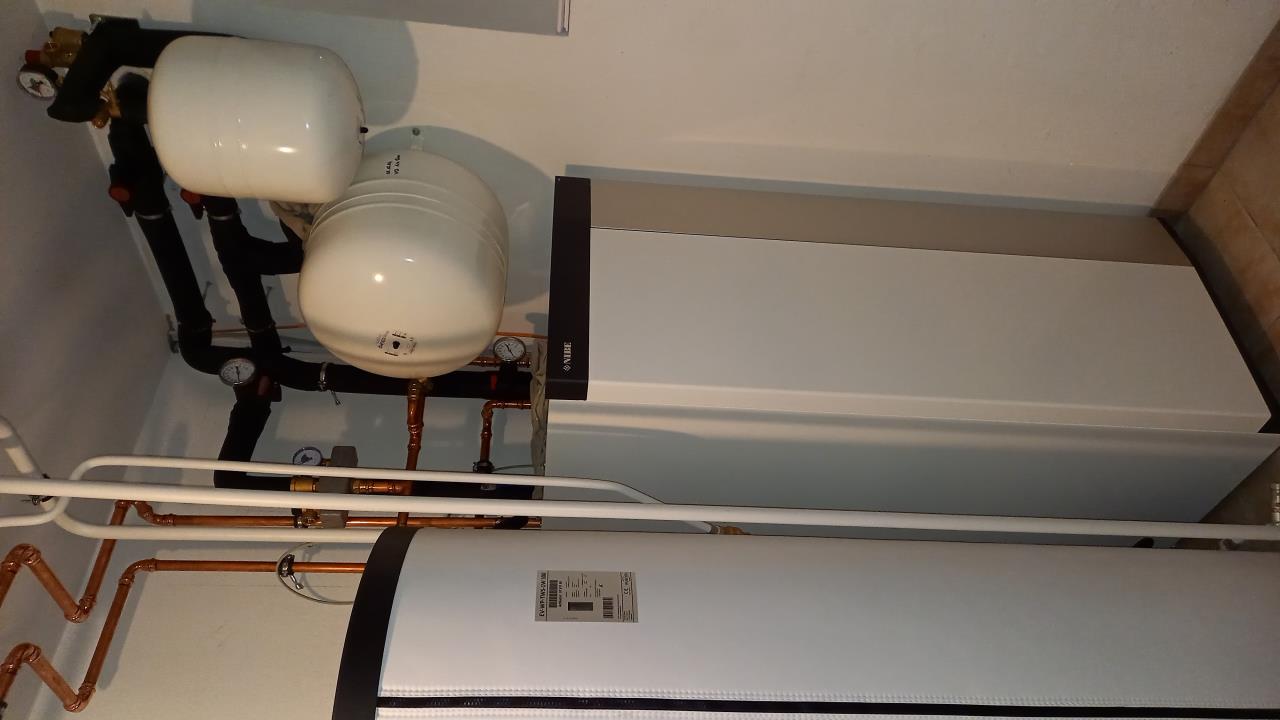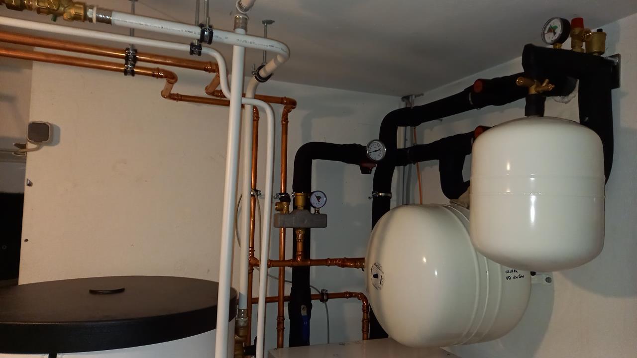 jetzt hab ich zwar genickstarre, aber n überblick😎 Im solekreis sieht man einen filterball. (blauer hebel) guck mal, ob soeiner auch noch im gemeinsamen rücklauf von FBH FBH [Fußbodenheizung] und WW WW [Warmwasser]-speicher zur WP WP [Wärmepumpe] sitzt. oder ist da nur ein schrägsitzfilter auf dem gleichen bild rechts? wenn du jetzt aber plötzlich fast 26l/min hast, kommen wir der sache näher.gut. schon etwas verwunderlich. vordruck von 1,4bar am großen MAG hat er notiert. gut. auffüllen bis 1,7 oder 1,8 bar wäre dann passend. eigentlich müsste wieder aufbereitetes wasser rein... tue mich schwer zu sagen einfach leitungswasser reinzupumpen. der eine liter macht den braten aber wohl nicht fett. ist egal. die zwei sind mit den absperrhähnen davor dazu da, um die ganze anlage zu spülen. beide lassen ein befüllen zu. füll den schlauch aber vor, damit wenig luft rein kommt. alles klar, dann sollte der rest passen. thermosyphone hat er leider nicht realisiert. aber mit zirku wirst du eh hohen WW WW [Warmwasser]-tempverlust haben. naja und alle leitungen ungedämmt. |