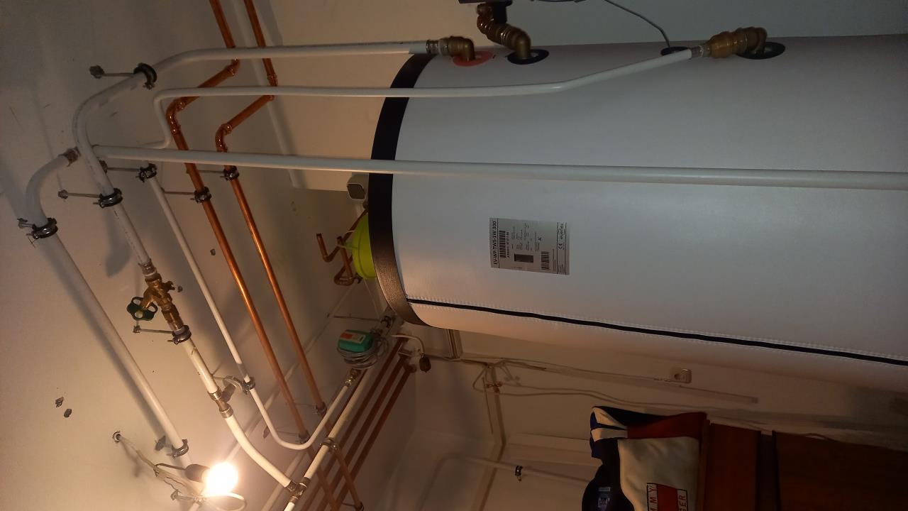 Magnetitabscheider habe ich gereinigt. Aber nur mit Wassernachschub per Öffnen der Absperrhähne kamen viele kleine schwarze schlammige Partikel heraus. Vorallem mit dem oberen Absperrhahn ("nach" dem Abscheider). Ob das für weniger Durchfluss gereicht hat, bezweifle ich mal. Insgesamt habe ich wohl ca. 1L abgelassen, Druck fiel von 1,5-1,6bar auf 1,4bar. Ich weiß nicht, ob ich da nun (Leitungs-) Wasser nachfüllen soll. Denke, das geht per Wasserschlauch unten am WW WW [Warmwasser]-Speicher, nur an welchem der beiden Hähne?? Seltsam: Volumenstrom laut 3.1.10 ist erst bei 5,2 l/min. Steigt der so langsam? Ist nun ca. 15 min her. Edit: Nun ist der Durchfluss bei 17,8 l/min, vorher war er bei 13,8 l/min !? (immer noch manuell 70%) Vielleicht wird´s ja jetzt schon etwas wärmer. Test mit 100% ergab 25,8 l/min statt 22,5 l/min vor der Reinigung. Tatsächlich ein Renigungseffekt? Naja, Hauptsache jetzt höher. BT25, externer Vorlauffühler: Gibt es denke ich nicht. UKV, Pufferspeicher: Ich habe den Warmwasserrspeicher Evenes EV-WP-TWS-1W 300. BT2 und 3 sagt mir nichts. Ich denke, ich habe diese 3 Teile (UKV usw) oben in dem Plan gar nicht, sondern nur den Evenes statt dem VPB, oder? "Heizkörper auch weg?nur der eine heizkreis zur FBH FBH [Fußbodenheizung]?" Der Heizkörperkreis für 4 noch nie in Betrieb befindlichen Heizkörper wurde "sicherheitshalber" mit angeschlossen an den FBH FBH [Fußbodenheizung]-Kreis, ist aber absperrbar, ist auch abgesperrt und soll eigentlich nie angemacht werden. Würde ja auch die Durchflüsse/Hydraulik wieder komplett verändern und temperaturmäßig auch praktisch nichts bringen. Reichen die Bilder? |