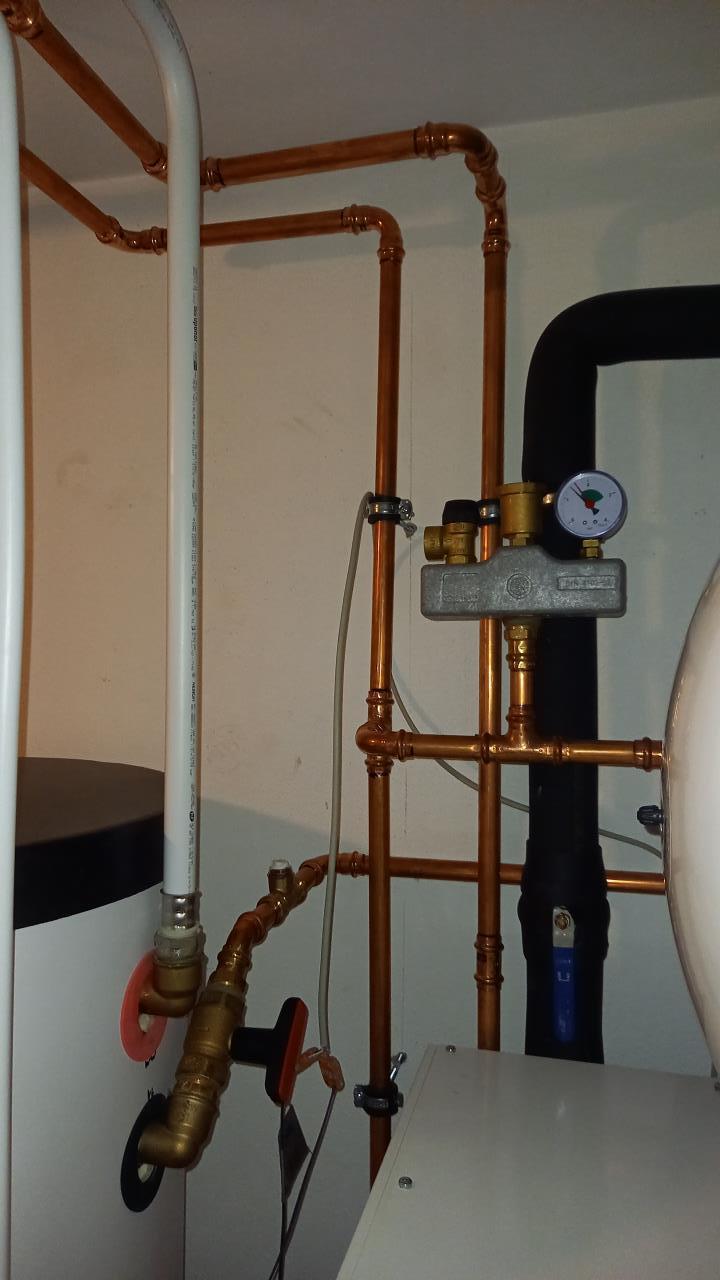 Ne, sorry. Der vermeintliche Filter ist ein entlüfter. Konnte ich im drittletzen Bild nicht richtig erkennen. Gleichzeitig hab ich im nachfolgenden Bild wieder diesen entlüfter falsch interpretiert. Dachte das wäre der zweite füllhahn. Ganz unten am Speicher ist natürlich Kaltwasser(MVR), richtig. Dann ist der am zweiten Rohr von unten(kupfer) zu nehmen. Hätte erwartet, dass da noch irgendwo einer versteckt ist. Wo ist eigentlich der magnetitfilter? Keine Ahnung wie der aussieht. Hab selber keinen. Zum Plan : Ich wollte dich nicht zwingen den Plan neu zu Zeichen 😂 Wollte nur sichergehen. Aber da ist noch die Pumpe vor der FBH FBH [Fußbodenheizung] eingezeichnet. Die gibt's ja auch nicht!? Oder ist die schon mal Platzhalter für die kleine zusatzpumpe für den langen Kreis? 😋 |