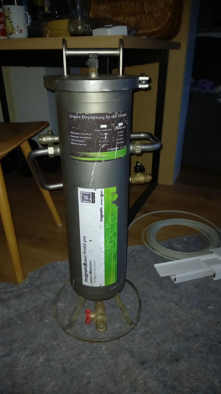 Piktogramm ist ja von Nibe, ich hatte mal nachgesehen und dazu "Rückschlagklappe/Schwerkraftbremse" gefunden, aber bei einem Bild ohne den Pfeil daneben. Wahrscheinlich kann ich das auf dem Bild wegmachen, es ist glaube ich auch keines verbaut. Ich kann nur Entlüfter und Magnetitabscheider finden. Aber bei dessen Beschreibung steht "zusätzlicher INOX-Feinfilter mit Filtereinheit 300m". Zählt vielleicht doch auch als Sieb. Die Schaugläser der neuen Verteiler werden auch schon bräunlich. Oder es ist das Wasser selbst. Kann das sein, da doch VE-Wasser drin ist? Oder kam da kein neues Wasser rein und die haben mit dem Salz nur das bestehende Wasser entsalzt, das aber drin geblieben ist und daher immer noch braun ist? In der Rechnung steht "Füllen der Heizungsanlage mit VE-Wasser nach DIN". Abregeln usw beginne ich morgen erst. Das mit dem Thermometer war glaube ich nix, das zeigt auch an was es will. |