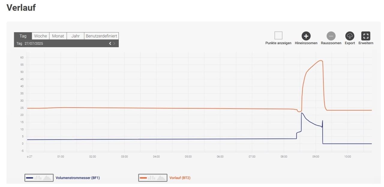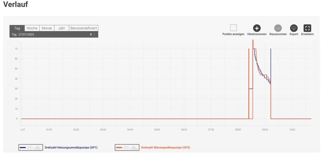 Also wenn jemand noch was weiß wg. Pumpenmodell und Kommunikation einer Steckdose mit der Nibe dann gerne her damit. Vorab noch eine Frage zum jetzigen Sommerbetrieb: Ist das so korrekt, dass die WP WP [Wärmepumpe] bei den jetzigen Temperaturen läuft und wie sie läuft? Also wegen Stromverbrauch, Zeitpunkt, dass GP2 läuft, usw. Siehe Bilder. Hoffe die richtigen. Und ist das nun wg WW WW [Warmwasser] oder gar Heizung aufgrund der Außentemperaturen nachts oder beides? Blicke da nicht richtig durch. |