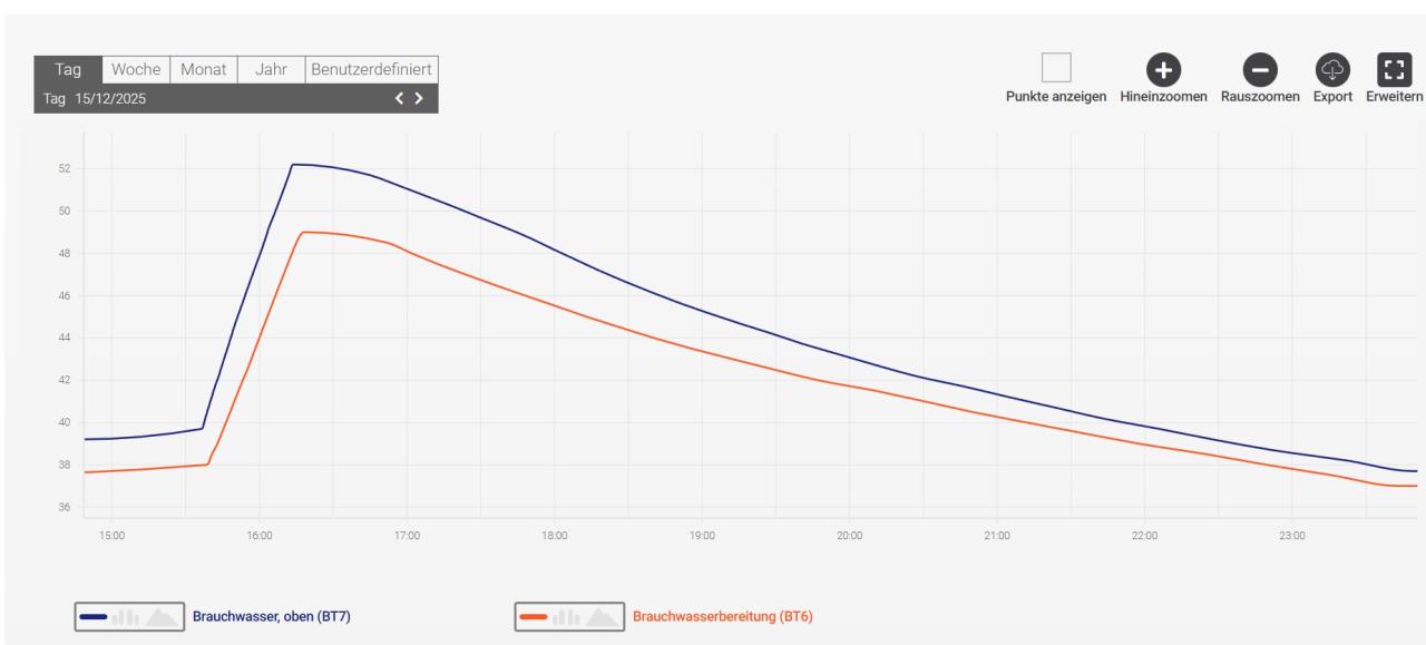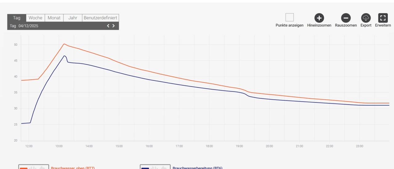 Manchmal, nicht jeden Tag haben wir es jetzt dass ohne WW WW [Warmwasser]-Entnahme der WW WW [Warmwasser]-Temp extrem schnell sinkt und dann zu unseren Dusch/Badezeiten quasi kein WW WW [Warmwasser] mehr da ist.