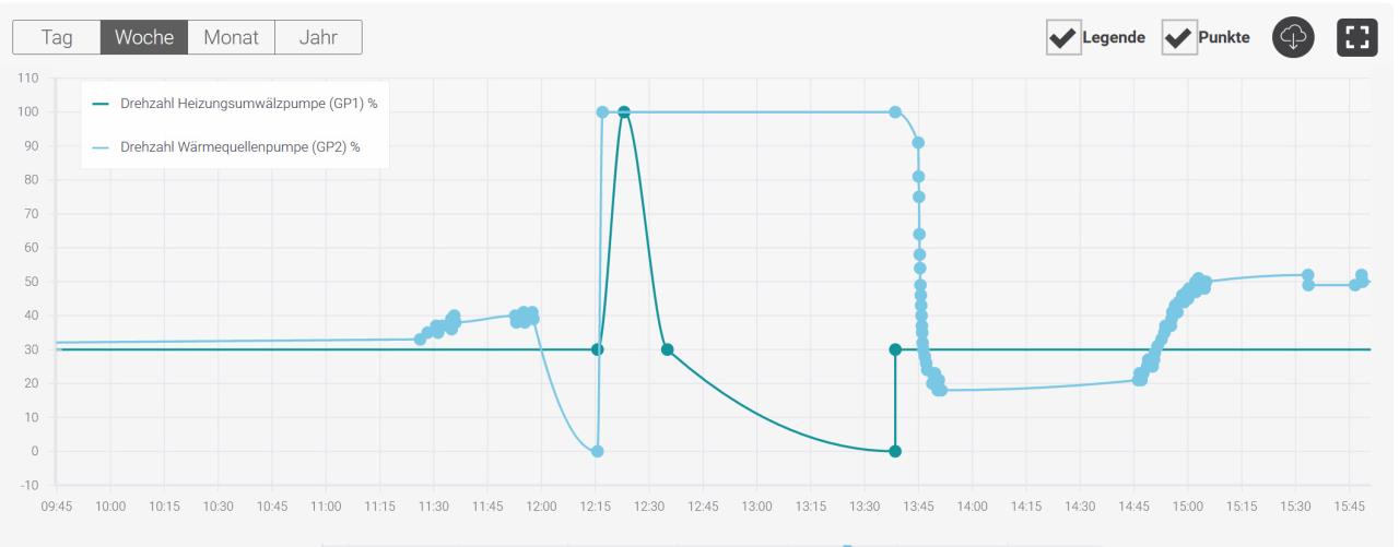 Schau mal ob zur gleichen Zeit danach die zwei Pumpen auf 100% gelaufen sind (kalibrierung), dann hat sich deine WP WP [Wärmepumpe] neu gestartet - hatte die Tage das selbe problem mehrfach. Die Firmware ist vieles, aber stabil ist was anders |