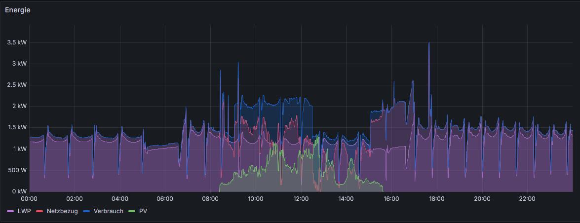 Update zum Jahresende Sanierung beendet, alle Förderungen erhalten und wir wohnen seit Oktober im Haus. Das einzige Problem seither: im alten betonierten Regensinkkasten steht das Wasser. Die Mauer ziehts und im neu gemachten Windfang ist der Innenputz nass :| werd ich aber nächstes Wochenende richten, indem ich in den Kasten eine Plastikwanne einsetze. Einfacher wär ausbetonieren und direkt ins Kanalrohr leiten, mal sehen was es wird. Muss mir für die zweite Variante noch eine Möglichkeit für ein Sieb überlegen. Ansonsten rennt die LWP LWP [Luftwärmepumpe] brav dahin. War etwas erschreckt von den 647 Starts bis November - hatte aber auch vergessen, der Warmwasserbereitung Zeiten vorzugeben. Jetzt ist sie halt 2,3,4 mal am Tag angesprungen im Sommer/Herbst. Nicht ideal, aber was solls. Hab für den Winter nun erstmal eine für uns akzeptable Einstellung gefunden: Heizkurve 0,35 bei 22° Wunsch. Die WP WP [Wärmepumpe] rennt seit Anfang November quasi durch (5 Starts in 60 Tagen). Am Anfang hat sie um die 0,5-1kw gebraucht. Mittlerweile konstant um die 1,3kw: Gestern Für Heuer im ersten Winter reicht mir das für's erste. Werden wir an der Stromabrechnung sehen ob wir da noch was umstellen bzw. Zeiten definieren. Durch meine BEG seh ich das allerdings nicht wirklich kritisch, da wir durch die Batterien auch Nachts teilweise gratis Strom haben.