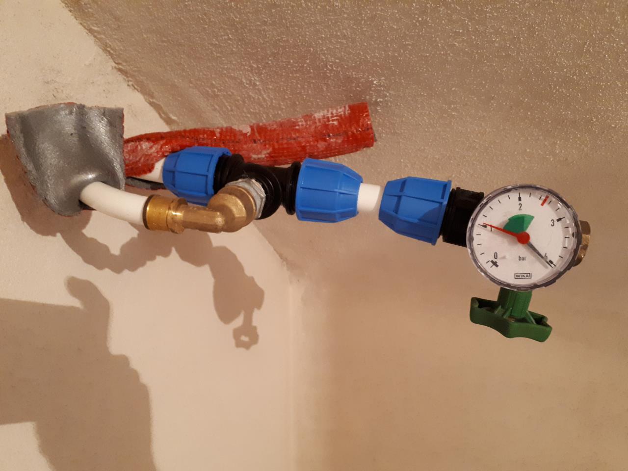 Druck unbedingt prüfen, sobald die Leitungen für später unzugänglich mit anderen Baustoffen abgedeckt werden.