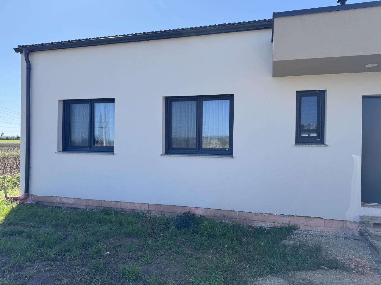 Genau. Geht weiter runter und nur knapp über die fertige Traufe und die Noppenbahn.