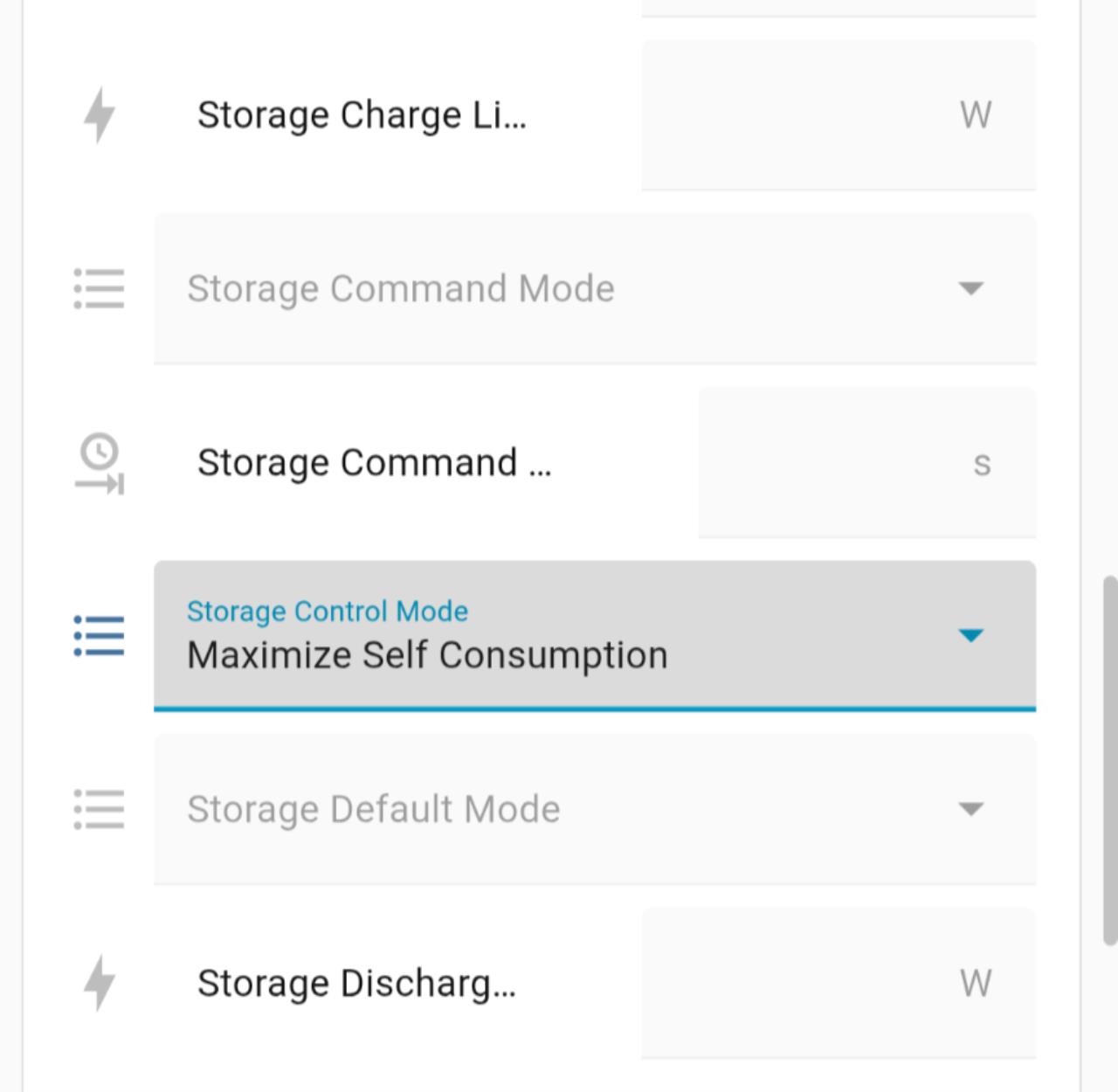 Du müsstest in Deinem Inverter in Home Assistant sowas sehen: Wenn Du jetzt gut bei Control Mode auf Remote Control gehst, kannst Du gezielt die Entladung steuern. Mit Storage Discharge Limit kannst Du begrenzen, wie schnell Du entladen willst. Das kannst Du alles dann entsprechend automatisieren. |