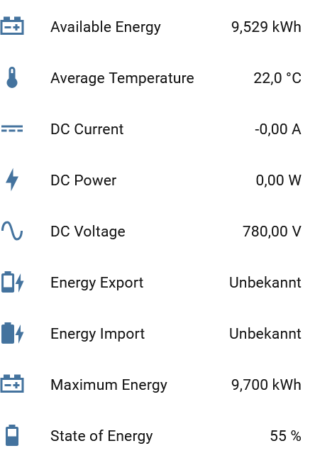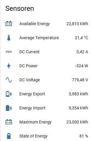 Ich habe auch nur einen WR WR [Wechselrichter], bin im Juni auf die Multi umgestiegen, weil die andere Integration nicht mehr funktioniert hat. Die Multi funktioniert- mit einer Einschränkung: Batterie charge / discharge steht fast immer auf unknown (SE Home Batterie, die anderem Batterie Werte werden angezeigt) Hast du das auch oder werden bei dir Werte angegeben ? |