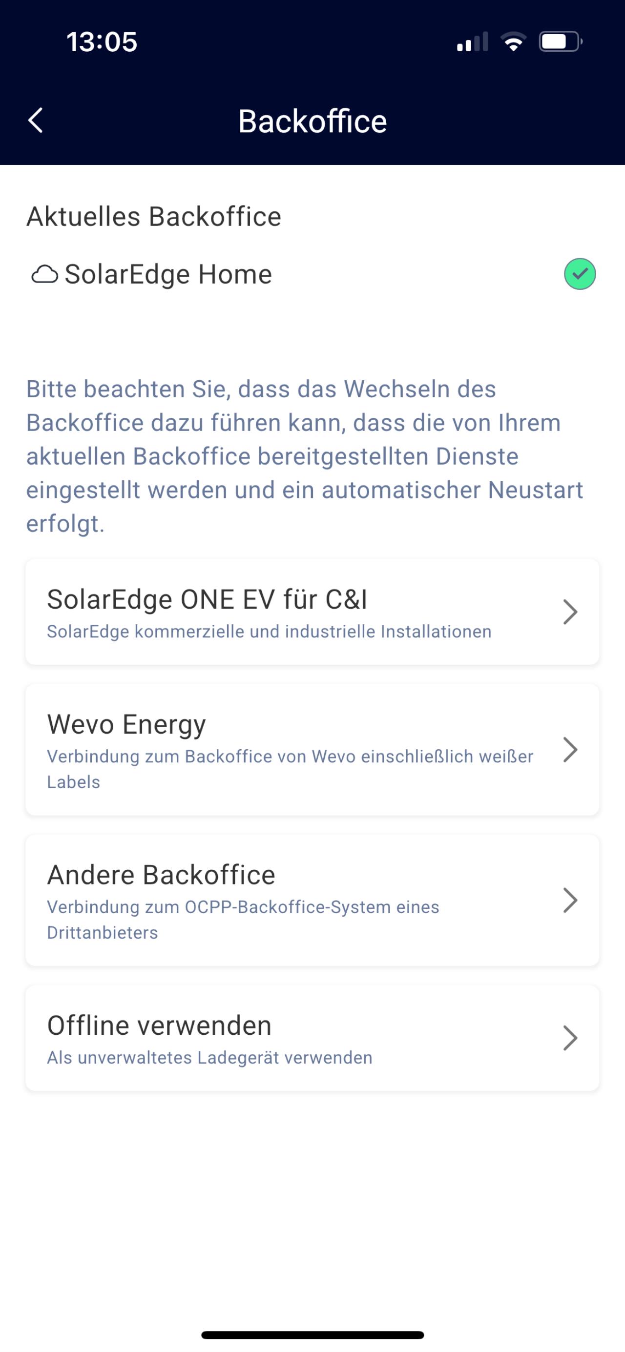 Also wenn du z.B. auf "Andere Backoffice" einstellst, funktioniert dann trotzdem noch das PV Überschussladen?