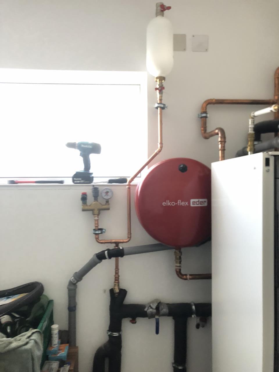 Heute endlich den Umbau auf Vase umgesetzt. ![]() schönheitspreis wird es nicht geben. noch einmal gespült, wieder etwas braune Sauce rausgekommen und die Umwälzpumpe läuft noch etwas langsamer. aufgefüllt mit Leitungswasser. Frostschutz reicht aus. Den Füllstand der Vase mittels Saugheber reduziert. Das vergälte Ethanol im Mund geht nur mit Listerine weg. Niemanden zu empfehlen, da es je nach Vergällungsmittel sehr giftig sein kann. Schau ma, ob ich's aushalte... 🥹 Das MAG schaut so aus ![]() ![]() leider gibt es eine undichte Stelle: ![]() Es ist der von nibe mitgelieferte Teil. Der Übergang zur Vase ist dicht. Dort liegt eine Flachdichtung, die am Kunststoff der Vase aufliegt. Habe zusätzlich noch Teflon verwendet. Man sieht am Bild den Wassertropfen. Es kommt zwischen dem oberen Messingteil und dem eingesteckten silbernen Teil raus. Verstehe nicht wie das abgedichtet wird. Habe ich etwas vergessen? Zu stark angezogen und den O-Ring zu stark gepresst? Die Mutter darunter hat einen konischen Sitz mit einem O-Ring. Auch noch zusätzlcih das Gewinde mit Teflon abgedichtet. Der Druck fällt in ca. 2 Stunden von 1,0 auf 0,5 bar ab. Bin sicher ihr habt eine Lösung. 😚 Edit: oder gar das Gefäß oben / unten falsch montiert? Im nibe Technisches Buch findet man: ![]() Da ist das große Gewinde oben und der eingesteckte silberne Teil ist nicht vorhanden. Oben soll ja ein Absperrkugelhahn hin. Wie wird der da montiert? Luftventil oben suche ich auch noch. |