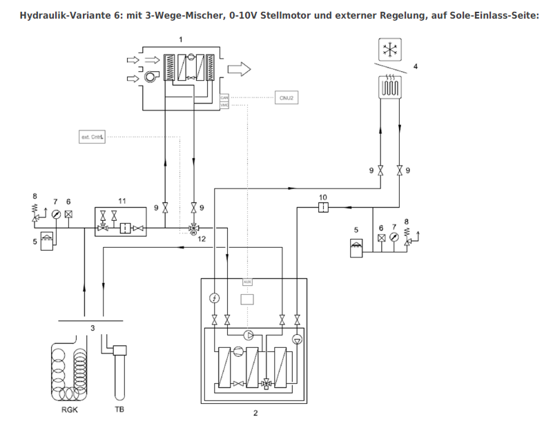 Ich verlege das Thema aus dem Soletemperatur Thread mal hierher. @Pedaaa wie regelst du das auf Basis der Temperatur bzw. wie planst du das beim HRDS+ zu machen? Das HRDS+ kann ja nur on/off für Entfeuchtung/Kühlung. Ich plane das HRDS+ auf der Heizkreisseite (im Hauptstrang, damit ich die aktive Kühlung der WP WP [Wärmepumpe] verwenden kann) ein und plane dann die KWL KWL [Kontrollierte Wohnraumlüftung] Kühlung mit folgenden Optionen: - passiv kühlen: Kompressor nicht aktiv, Wintermodus. Anhand der Vorlauftemperatur der Heizkreise steuern, wobei die wahrscheinlich nicht viel niedriger als 19 Grad sein wird beim flächigen Kühlen. Ob das eine Temperaturreduktion bewirkt? - aktiv kühlen & entfeuchten: Kompressor aktiv, Sommermodus. HRDS+ liefert die 19-25 Grad wenn ich es richtig verstanden habe. Regelung wäre nur mittels 0-10V Mischerventil Umbau möglich. - aktiv kühlen: Kompressor aktiv, Sommermodus. Nur mit 0-10V Mischerventil Umbau möglich, da sonst kritisch wg. Kondensatbildung (12 Grad) |