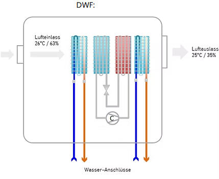 Moin zusammen, ich bin 2024 in meinem Passivhaus eingezogen und mir wurde damals bei der Bemusterung davon abgeraten Klimaanlagen einzubauen, da Zitat "unsere Häuser nicht warm werden". Naja, ich habe mich dann überreden lassen allein auf die Wärmepumpe (FBH) als Kühlung zu vertrauen. Naja, die letzten beiden Sommer haben gezeigt, ja, prinzipiell gehts, ich komme auch bei 35° Außentemperatur nicht über 24°, wenn ich alle Rollläden schließe, nicht backe und koche und nicht zu viele Menschen im Haus sind. Aktive Verschattung ist etwas, das ist für mich ok, auch wenn ich da lieber hätte Raffstores einbauen sollen... Naja. Aber die letzten beiden Punkte sind nervig, ich wohne zwar allein, aber bei Besuch wird es schnell kuschelig und jegliche Wärmequellen zu vermeiden für mehrere Tage finde ich auch nicht so prickelnd. Dazu kommt, wie bei alle hier natürlich, auch die Luftfeuchtigkeit, die selbst mit runtergefahrener Lüftung zwischen 60 und 70% landet. Daher war ich sehr froh diesen Thread (und dieses Forum) zu finden und sah, dass sich mittlerweile einige schon Gedanken gemacht haben. Mein Ziel nächstes Jahr: Luftfeuchtigkeit deutlich reduzieren auf ca 50% Auch bei hohem Außentemperaturen würde ich gerne die letzten 2° schaffen und auf 22° Raumtemperatur kommen. Randbedingungen: Verbaut als KWL KWL [Kontrollierte Wohnraumlüftung] ist eine Brink Renovent Sky 300, leider sind die Zuleitungsrohre in die Räume als DN50 (diese hellgrünen Plastikdinger) ausgeführt. Der Platz im Technikraum (kein Keller) sollte ausreichen, um die Anlage umzusetzen und dann ein nachgelagertes Kühlgerät zu installieren Wärmepumpe ist eine Vaillant Arotherm Split 35, also das kleinste Modell. Hier könnte ich den Heiz/Kühlkreis anzapfen. Probleme die ich aktuell sehe: Die DWF Geräte scheinen einen Mindestdurchsatz von 150m³/h zu haben. Ich fahre die Brink grade auf 50-80 m³/h, mit 80m³ ist sie nachts schon deutlich hörbar, aber noch nicht nervig. 150m³ ist eigentlich kaum zu ignorieren, am Tag merkt man es weniger, aber in der Nacht ist es sehr deutlich. Ich vermute, nachdem ich etwas hier rumgelesen hab, dass es sich da um Auslegungsfehler handelt und mit den kleinen Rohrquerschnitten ich mir ein Ei gelegt hab. Schade, dass ich das damals komplett in die Hand der Baufirma gegeben hab (wie so häufig...), aber das lässt sich jetzt nicht mehr ändern. Vielleicht lässt sich das mit einem Geräteschalldämpfer vor dem Verteiler noch etwas verbessern, aber ich glaube nicht wirklich dran... Insgesamt muss ich schauen wie ich das platztechnisch unterbekomme, der Technikraum ist nicht besonders riesig. Kann man die DWF Geräte etwas runterregulieren, dass sie auch mit weniger Durchsatz arbeiten können? Die maximale Kühlleistung wird vermutlich eh nicht benötigt werden, das Haus ist mit 110m² auch recht klein und wie gesagt sehr gut gedämmt, so dass nicht viel Kühlung nachgefüttert werden muss. Oder sind die 150 m³ wirklich ein Minimum, was nicht unterschritten werden sollte? Gibt es irgendwas dabei zu beachten den Heizkreis der Vaillant anzuzapfen? Ich vermute, ich muss das Ding dazu bringen auf jeden Fall durchzupumpen, oder? |