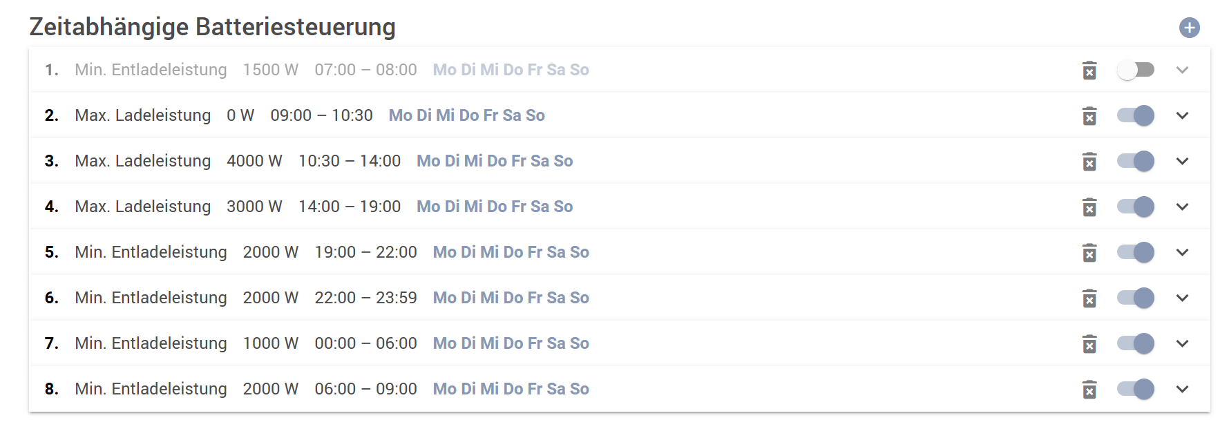 Und mit einem weiteren WR WR [Wechselrichter] und dessen Installationskosten brauchst wie lange zu Amortisation? Abgesehen, dass 120kWh (wie hast diese errechnet?) unter 40€ kosten. Kannst dann auch gleich mal schauen, wie Effizienz dein Deye beim DC/AC wandeln ist und obs da nicht auch Alternativen gibt 😜 Alles zwar schön und gut, aber wennst in der Nacht keine Leistung brauchst, dann fällt der Eigenverbrauch halt ins Gewicht, mein Sofar schaltet standardmäßig in den Standby bei nur 250W Last, ausser ich übersteuere das. |