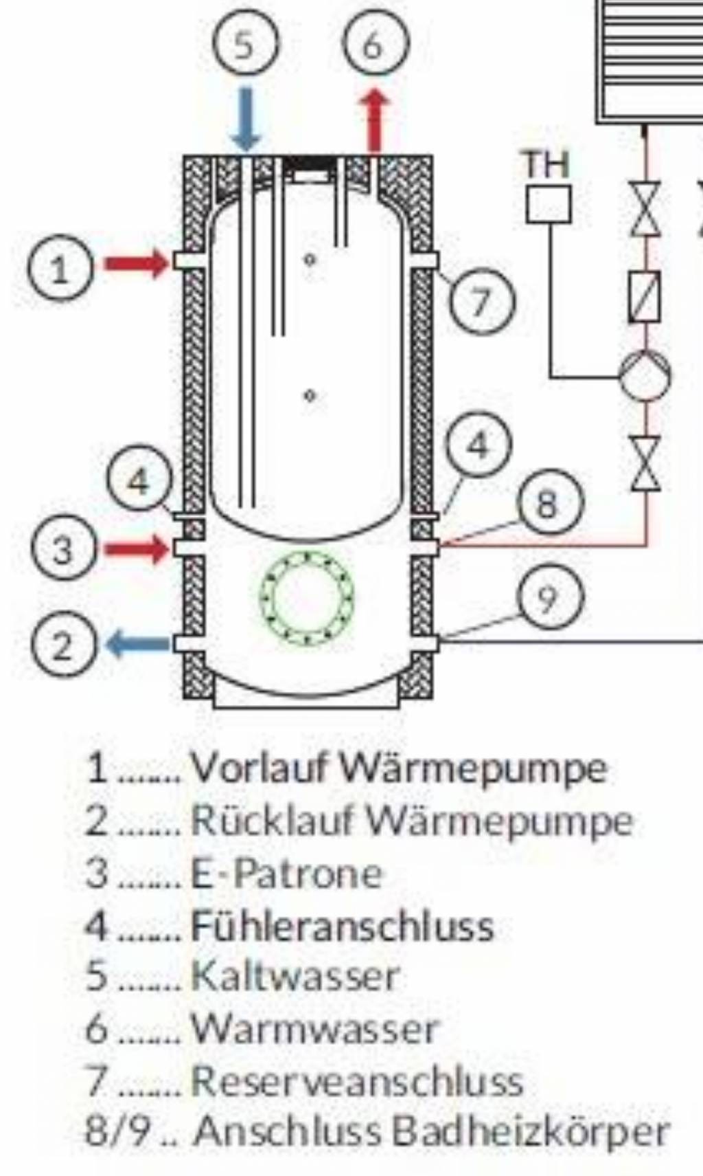 Der Temperaturfühler sind hier aber nur fix anzubringen, gehört dann nicht bei 4 Positioniert (wo er lt Anleitung hinsollte) sondern beim 8er, da ist offensichtlich auch noch eine Position. Da bleiben allerdings im "worst case" nur noch 100l Warmwasser übrig. Austria Email gibt es eh überall, Panasonic bekommen die Installateure über SHT-Großhandel. Ich mach hier keine Werbung für irgendwelche Produkte, ea gehen auch andere Hersteller wo der Register ähnliche Flächen, Position und Fühlerposition hat. |