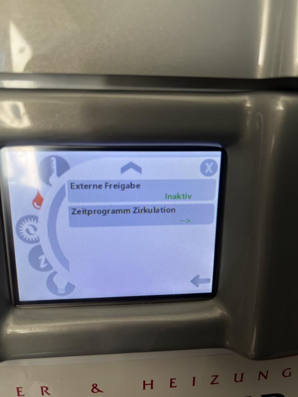 Zirkulation hat er keine steht iwo oben. Mach noch ein Bild von der Verrohrung dass ma sieht wo die Leitungen anschließen. Und drauf achten dass diese nicht verschwommen sind. Den Heizstab mal komplett deaktivieren |