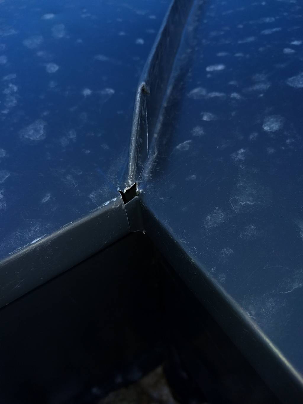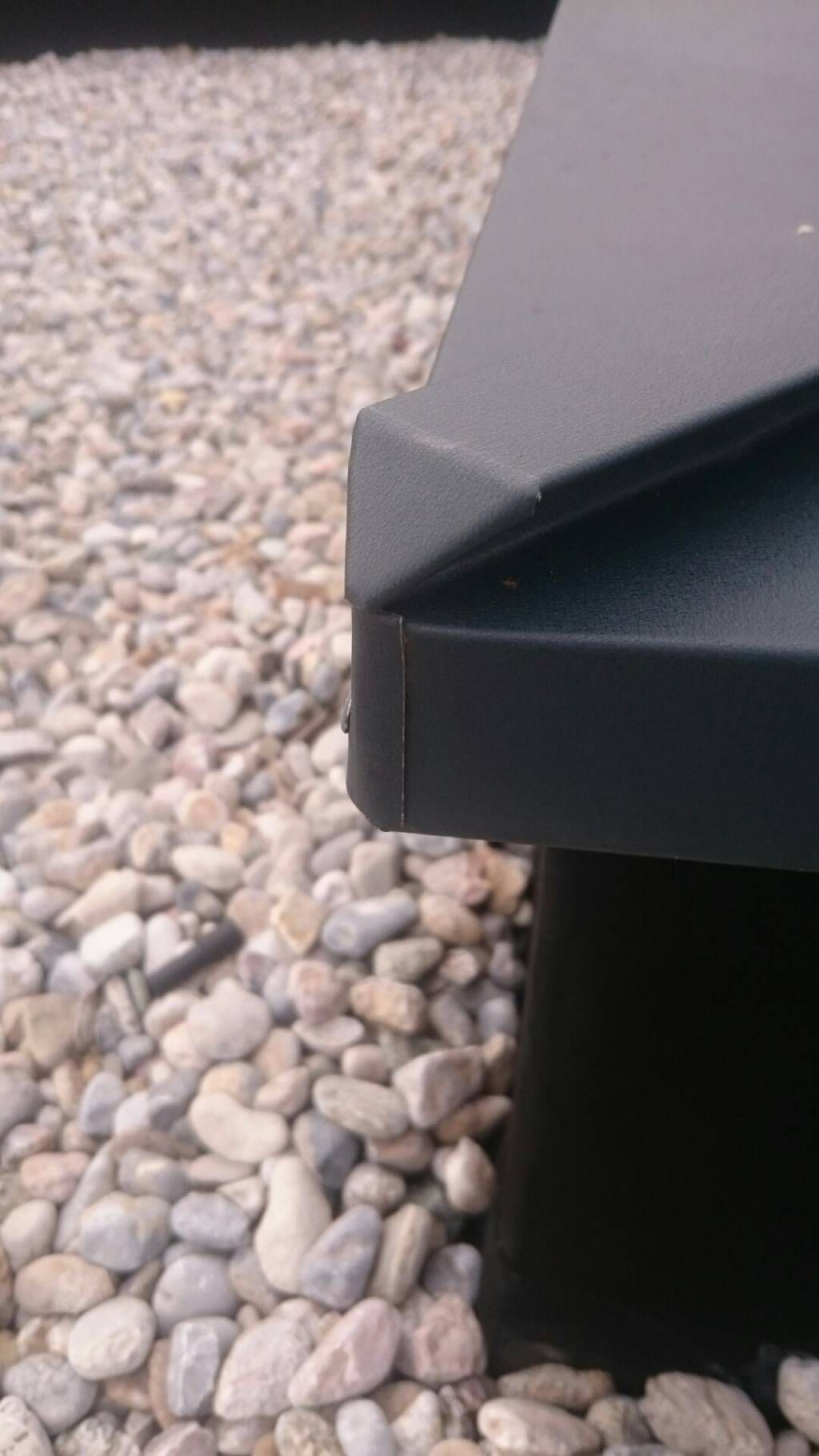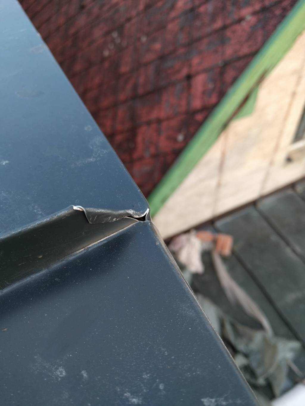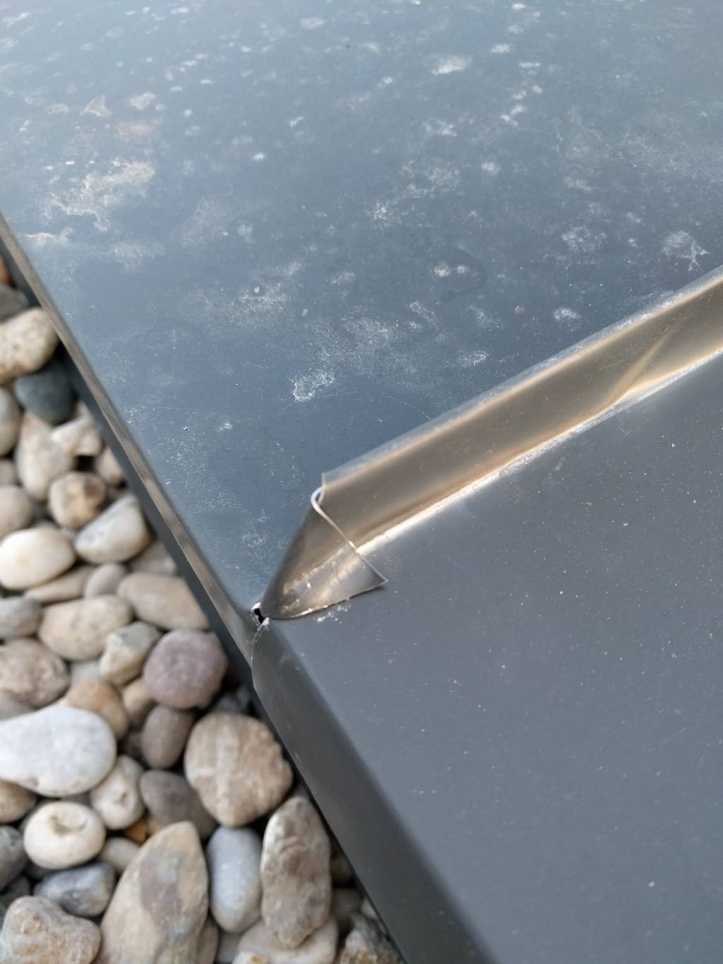 Spenglerpfusch - Die gerissenen, offenen Ecken sind auch mit Preisabzug nicht akzeptabel und können kaum dauerhaft abgedichtet werden.