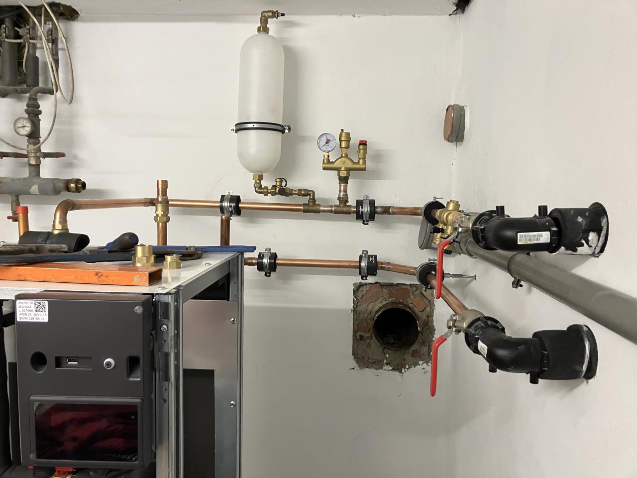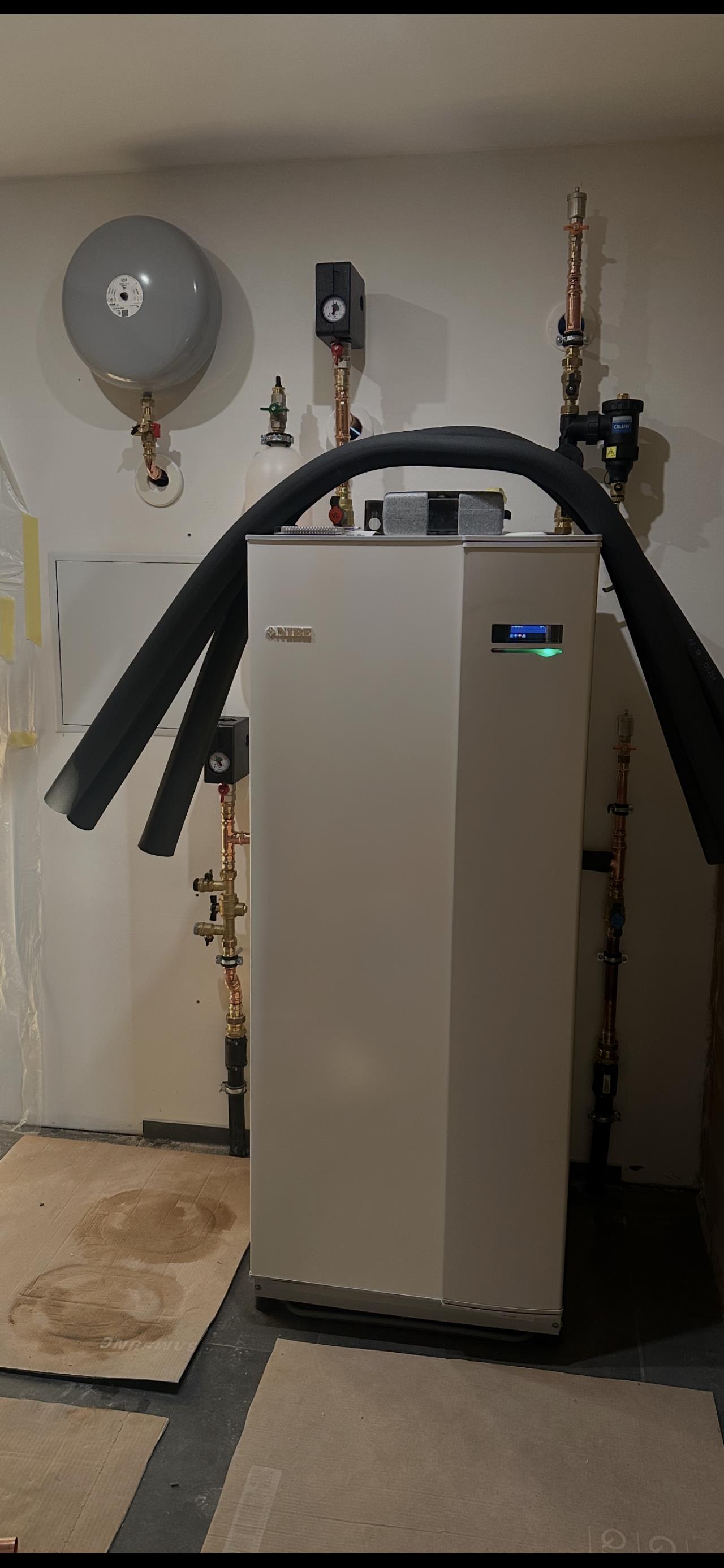 Moin, hier mal meine minimalistische "selbstgebaut-Laien-Installation". Vor- und Rücklauf verschwinden in der Trockenbauwand, wo es dann auch zu den HKV´s geht. Alles in 28er CU. Bin mit der Sole direkt aus dem Boden hoch und habe die Soleleitungen um 90° gebogen. Nicht wundern, ist noch eine F1155, die ich gebraucht sehr günstig für das Ferienhaus bekommen habe. Funktioniert zum Glück. :) Gruß Kristian |